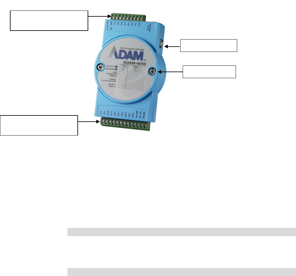 The ADAM-6050 uses a plug-in screw terminal block for the interface between