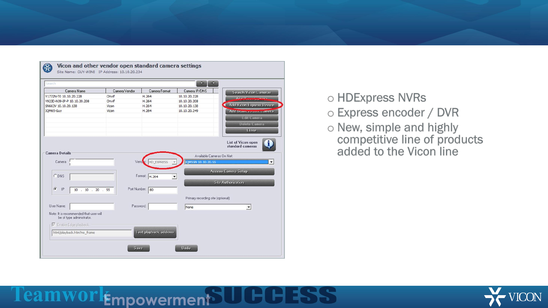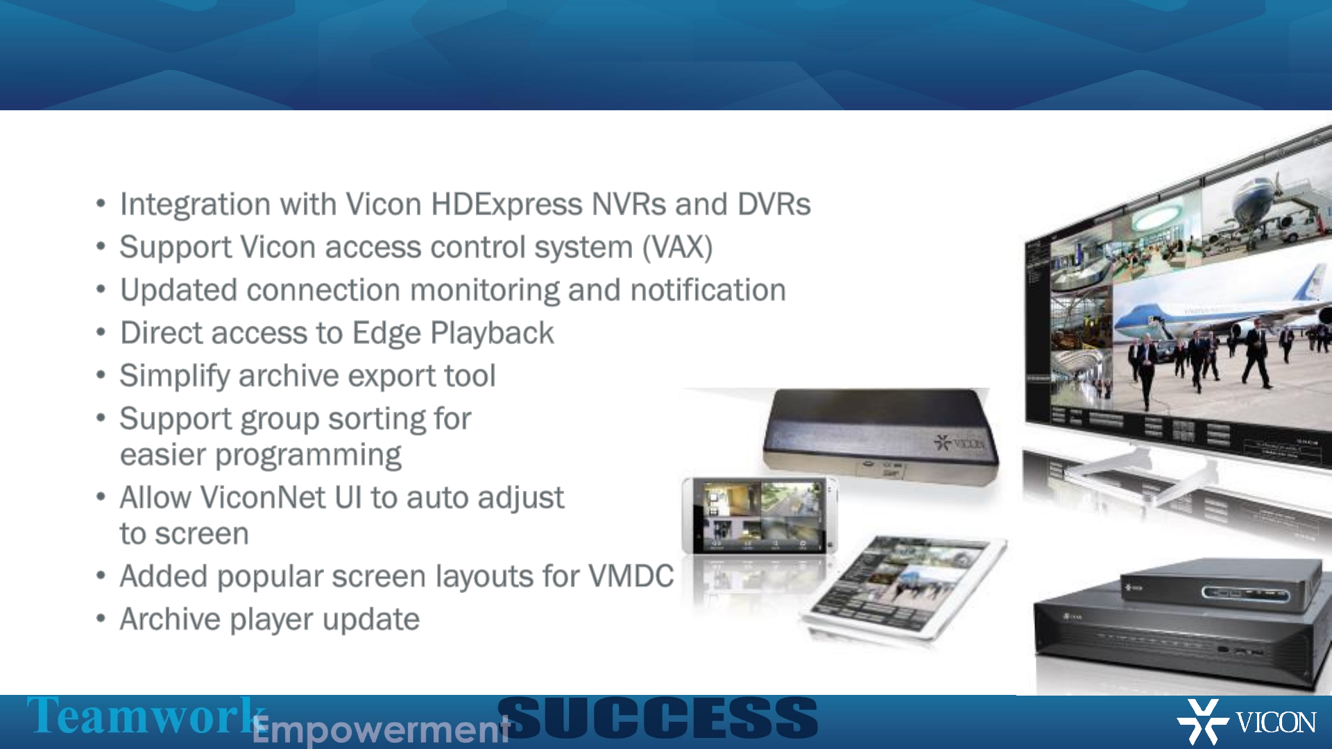 •Vicon has begun to convert all shipments of ViconNet, in software or pre-