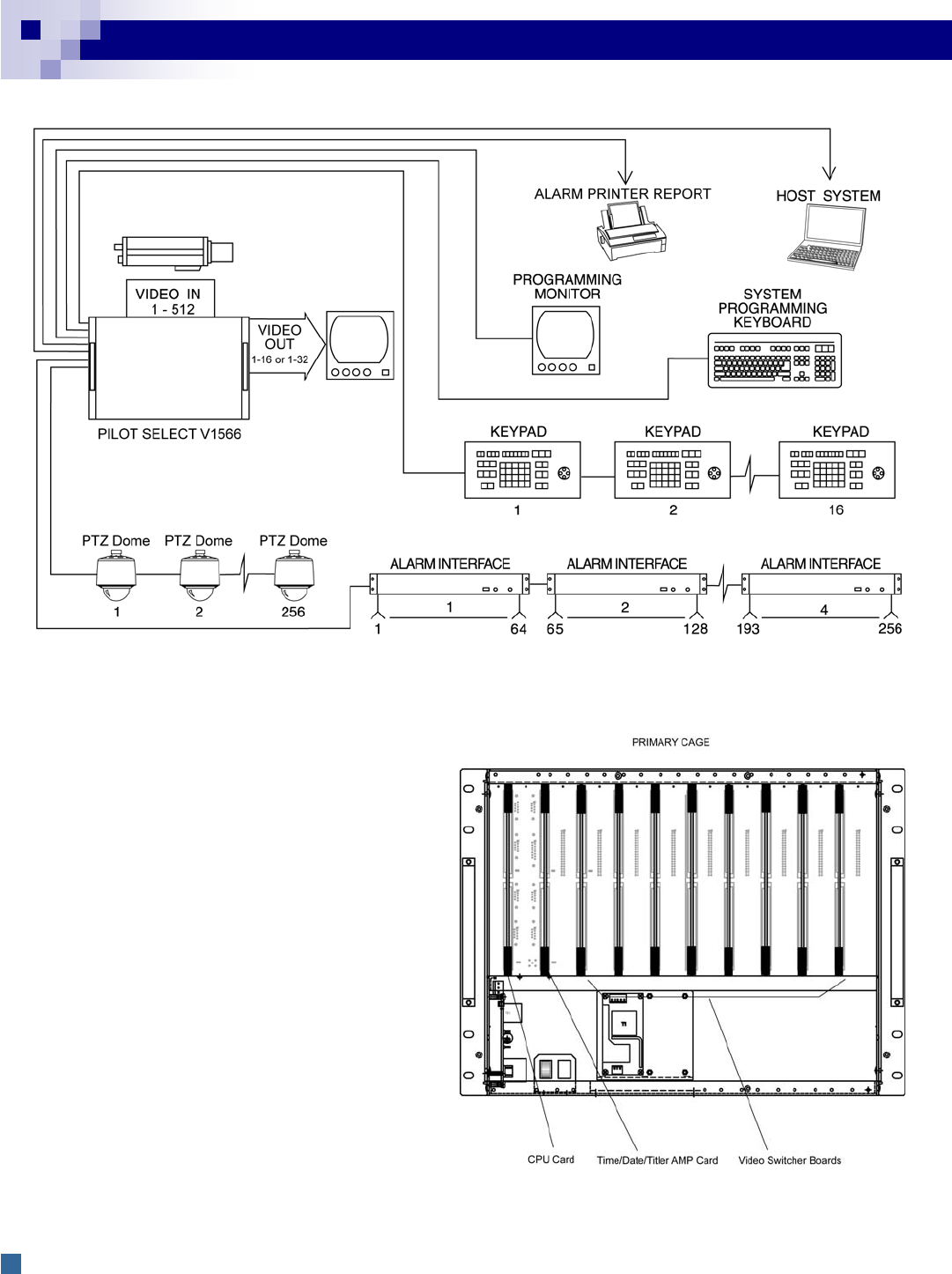 The Pilot Select can support up to 512 cameras and 64 monitors using 4 card cages. The system
