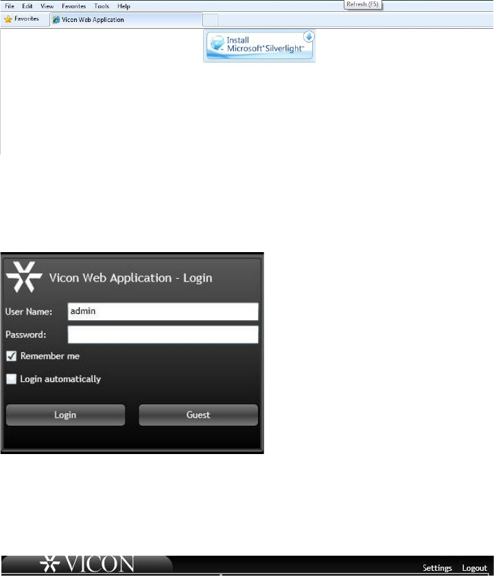 Note that the ViconNet Web Viewer requires Microsoft® Silverlight® to run. If