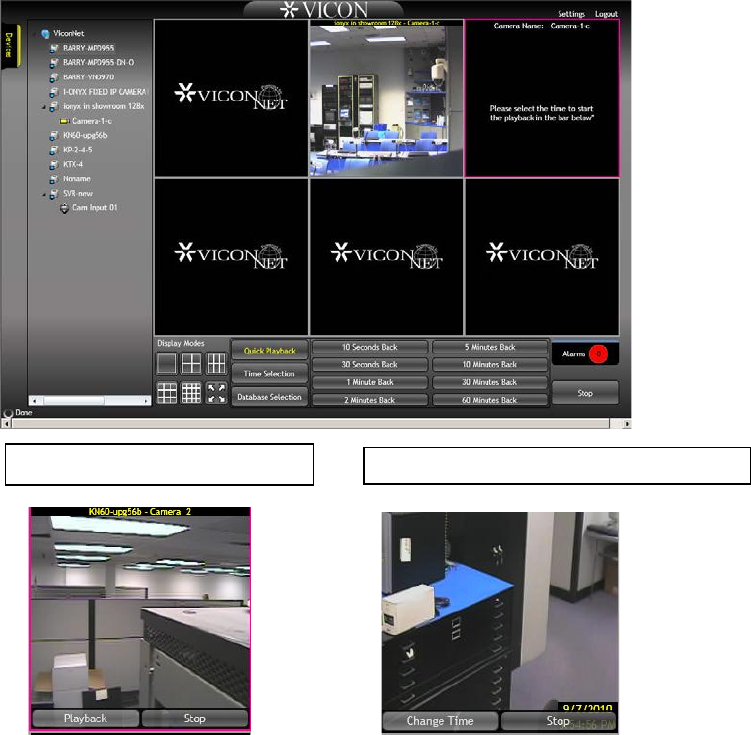 • As in ViconNet, Quick Playback is only available for Kollector® DVRs