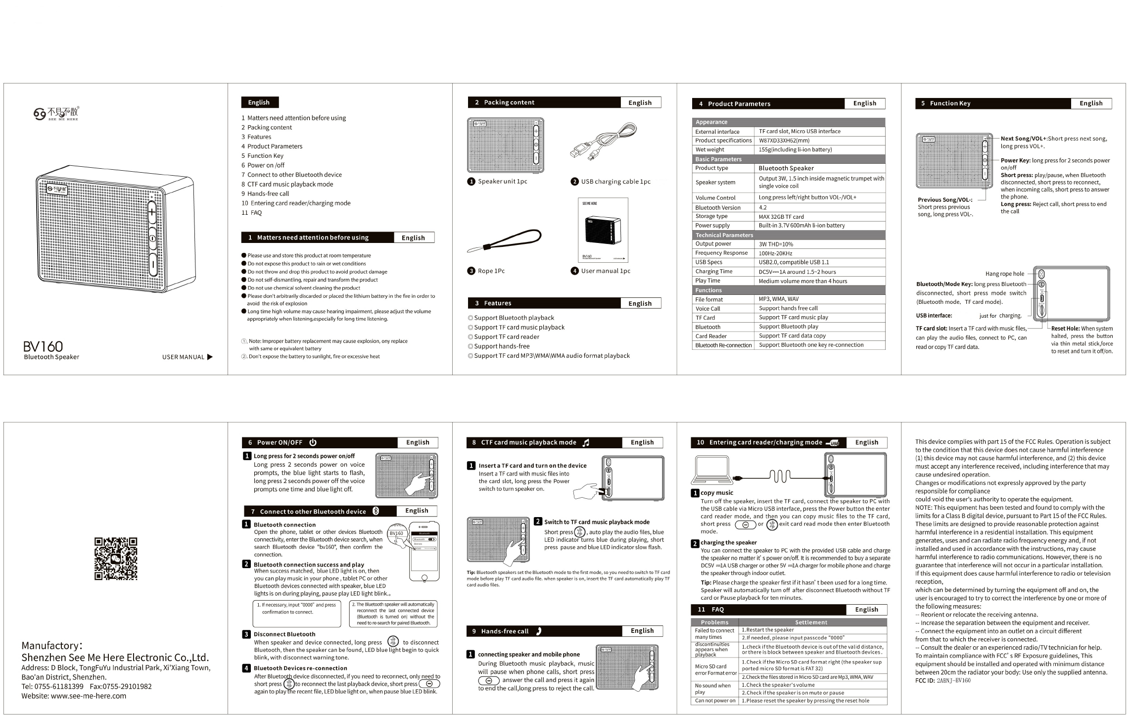 See Me Here Electronic BV160 Bluetooth Speaker User Manual