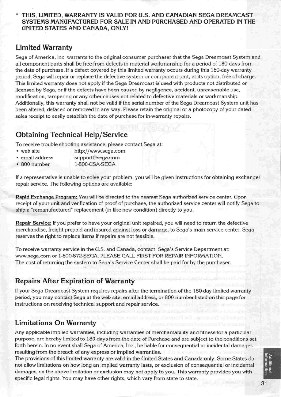 Sega Dreamcast Instruction Manual 3