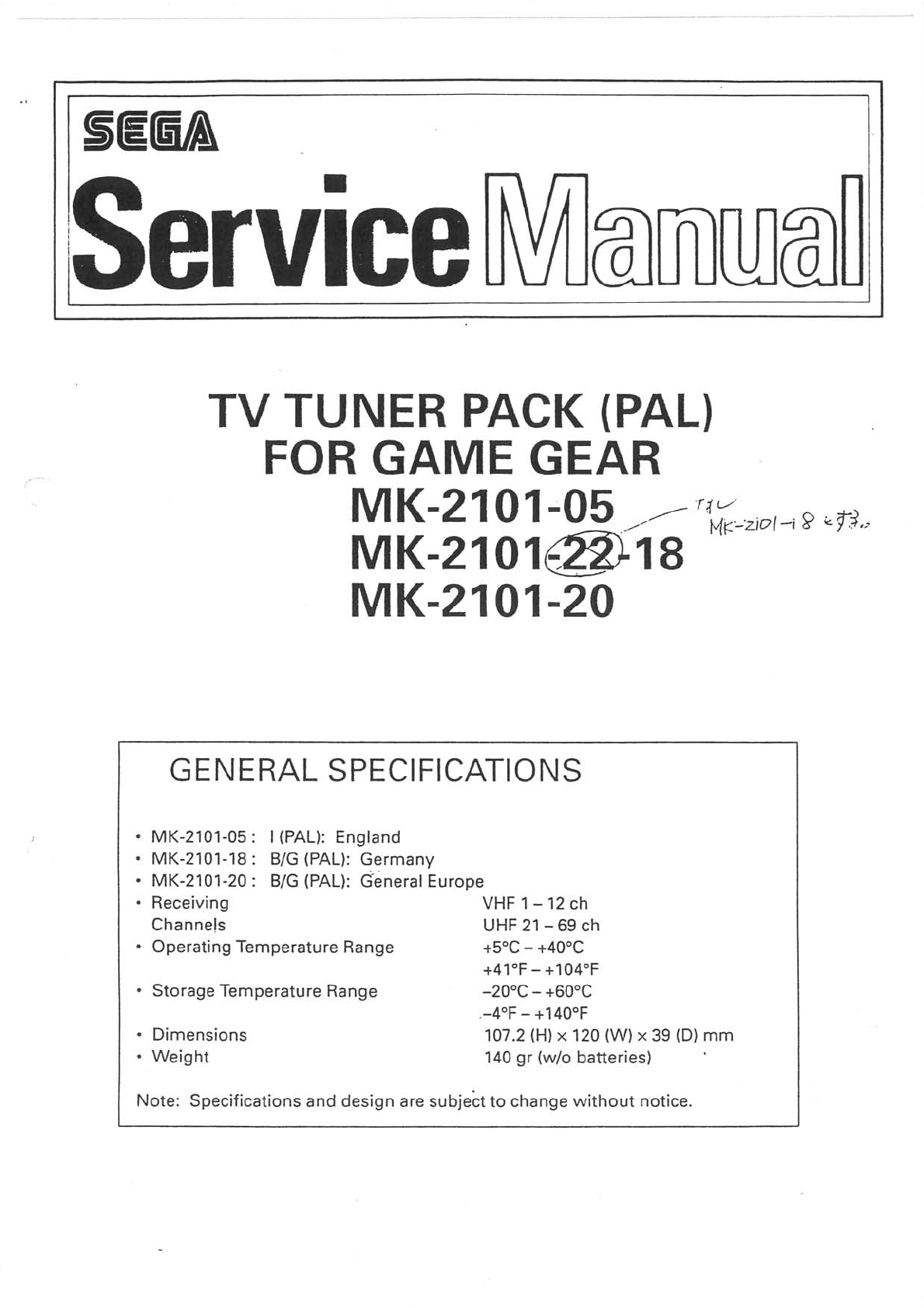 : Sega Sega-Game-Gear-Tv-Tuner-Pack-Service-Manual-779082 sega-game-gear-tv-tuner-pack-service-manual-779082 sega pdf