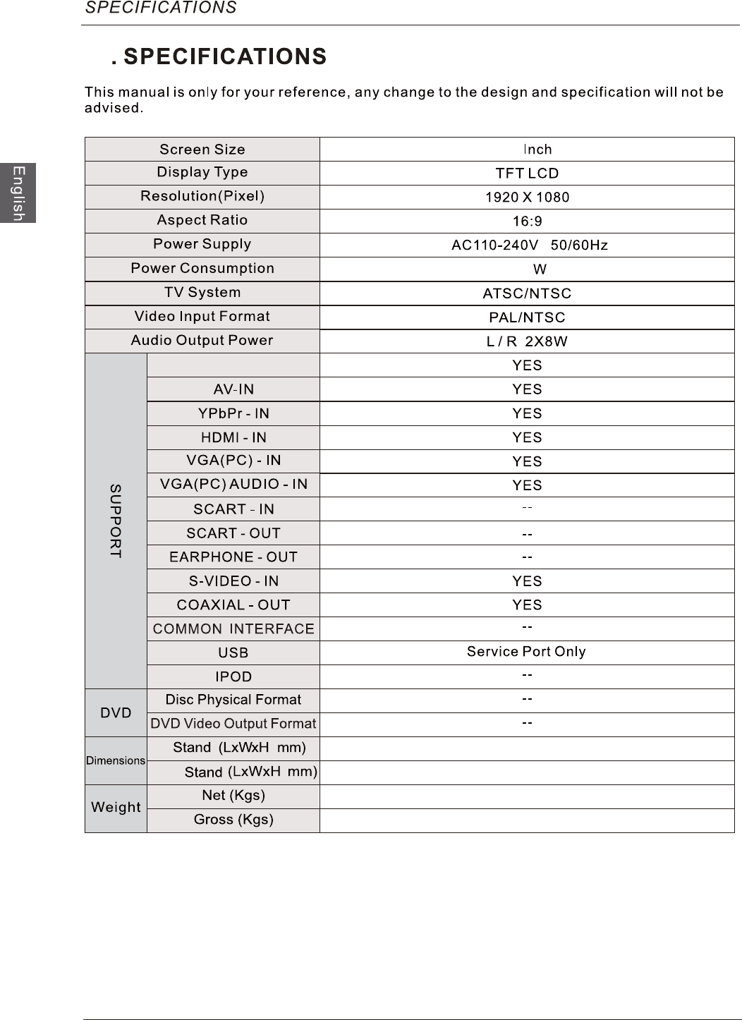 Este manual es sólo para su referencia, cualquier cambio en el diseño y la especificación no contará con