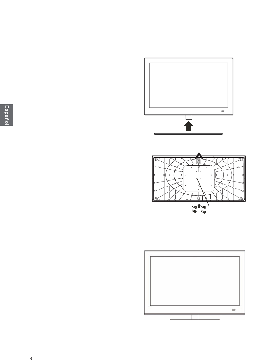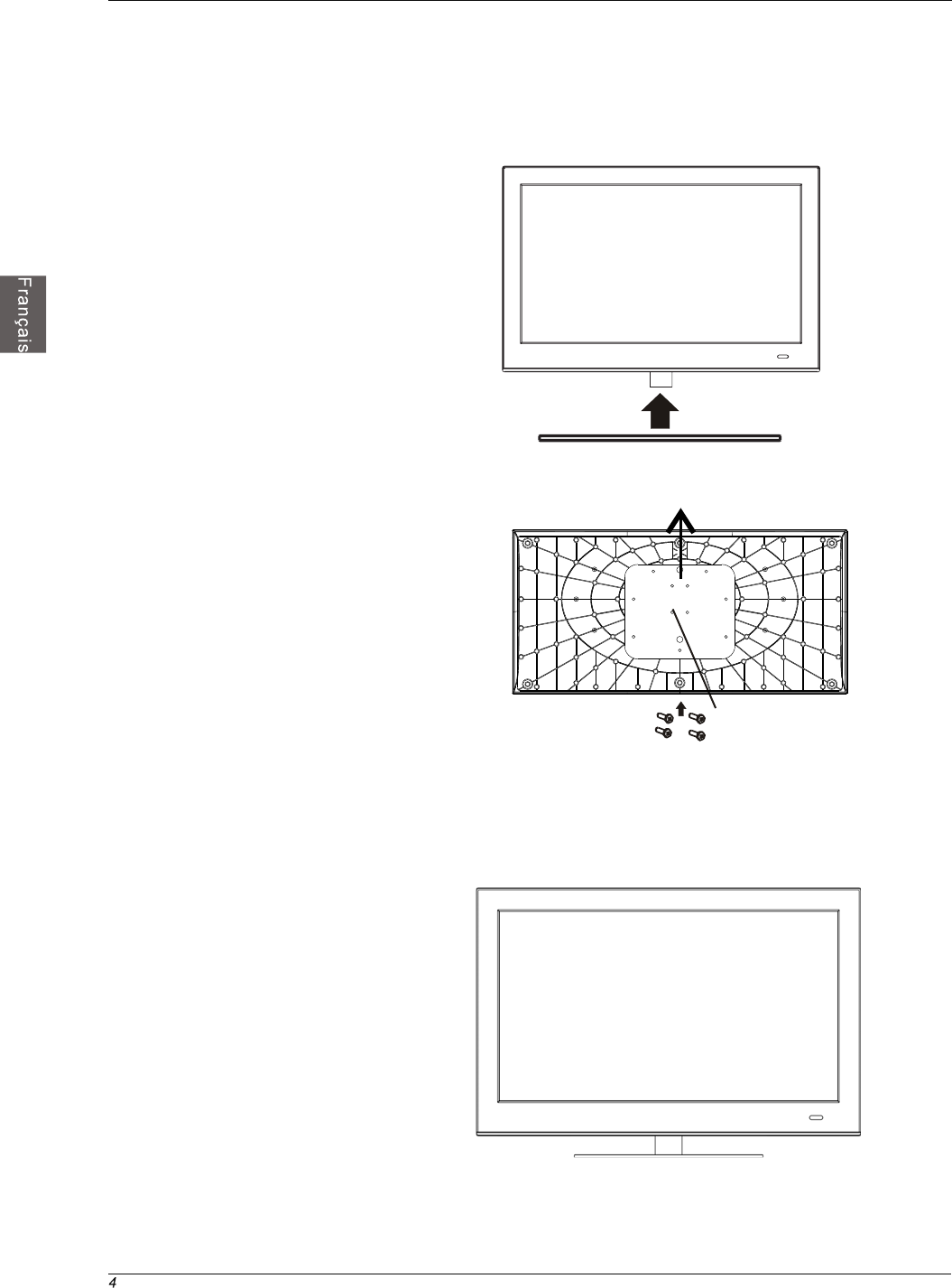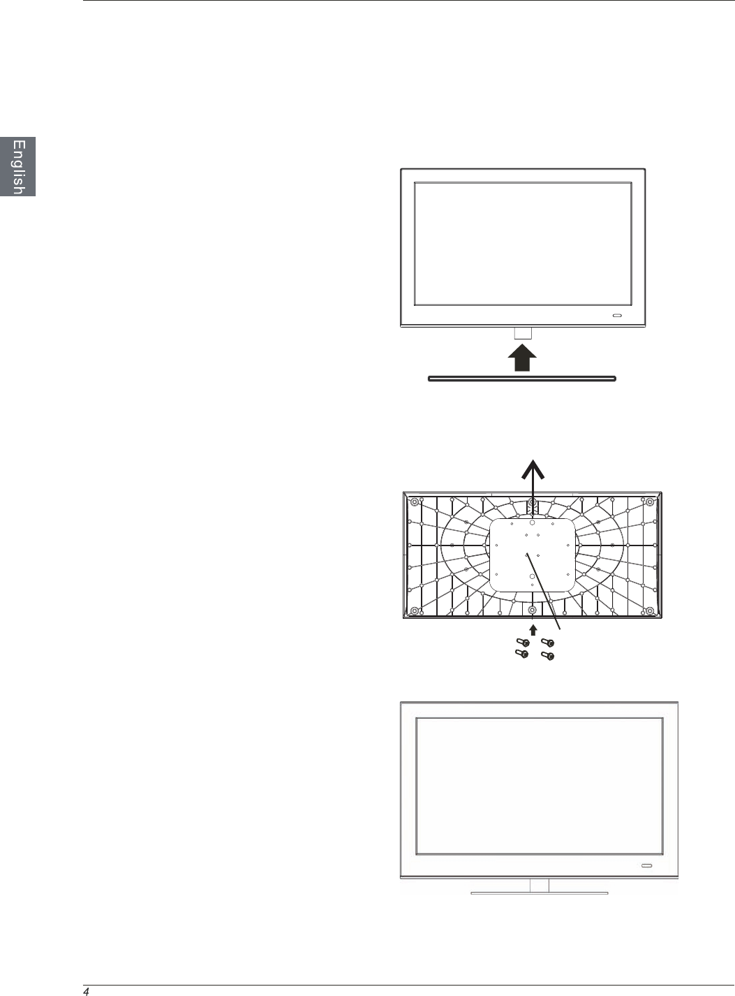 Follow the instruction to install the Base Stand of TV. You may reverse the steps to