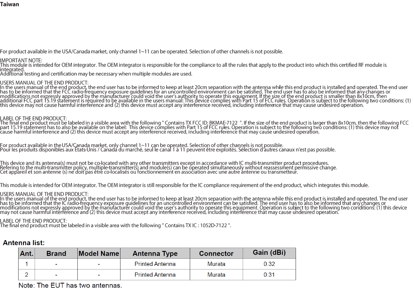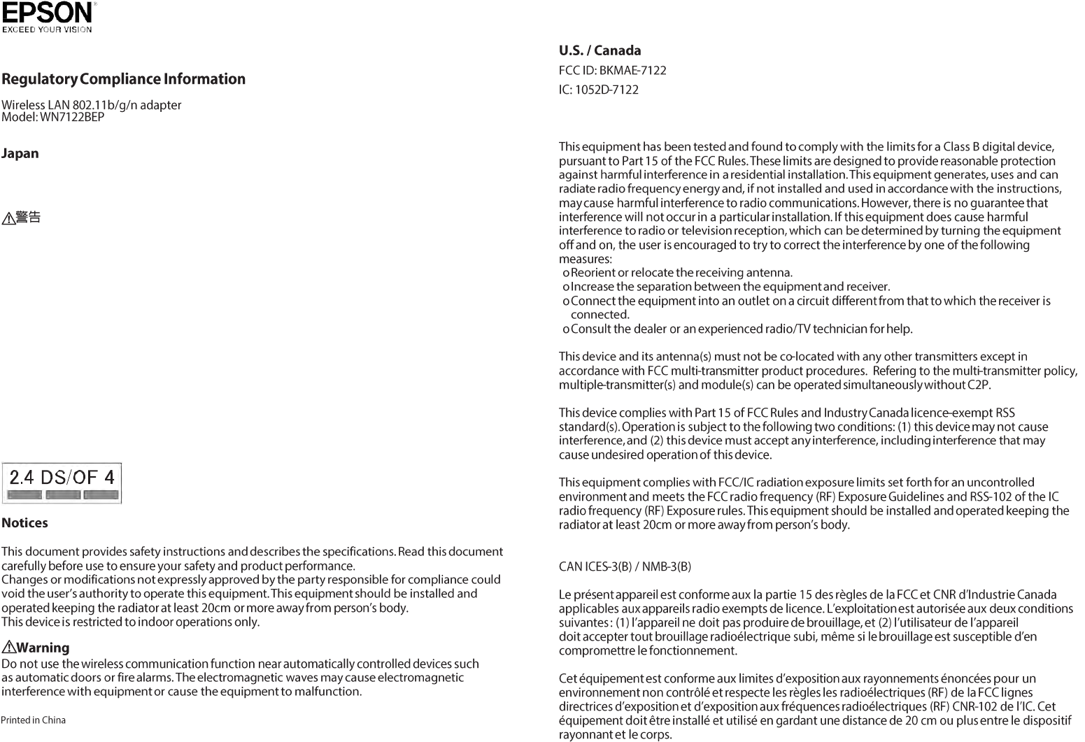 Seiko Epson Corporation WN7122BEP EPSON FCC CE Sheet
