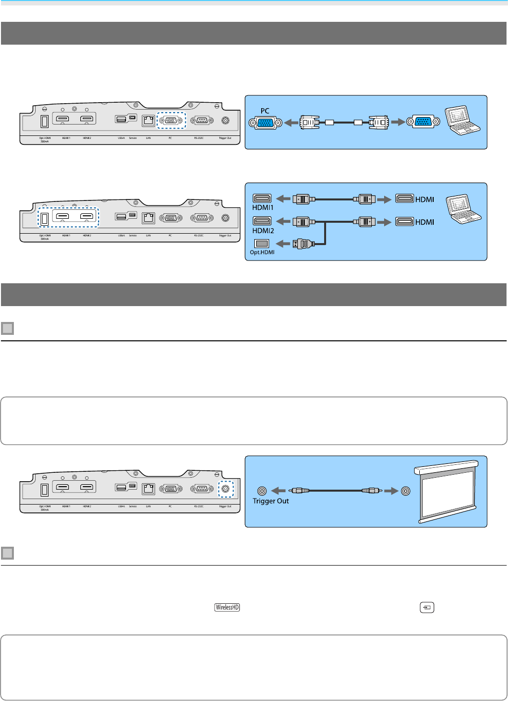 •This projector cannot transmit signals in the 18 Gbps transmission band such as 4K60p/4:4:4 using a