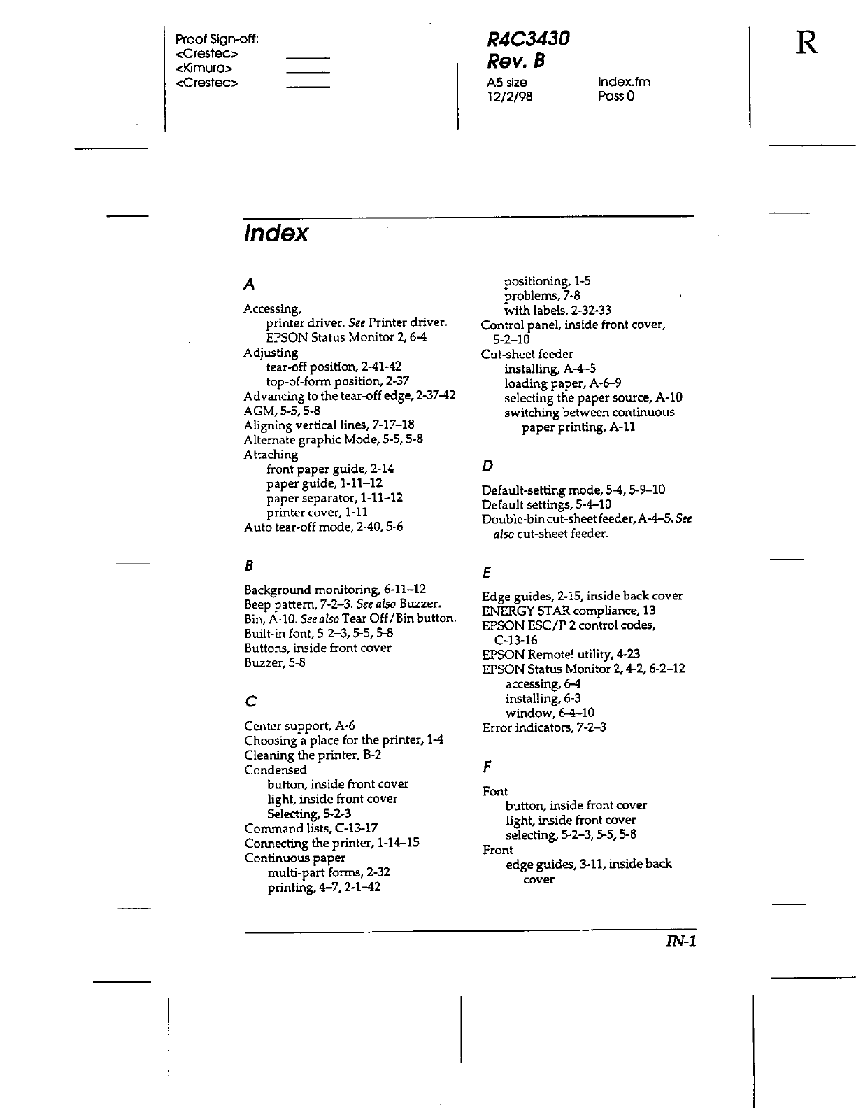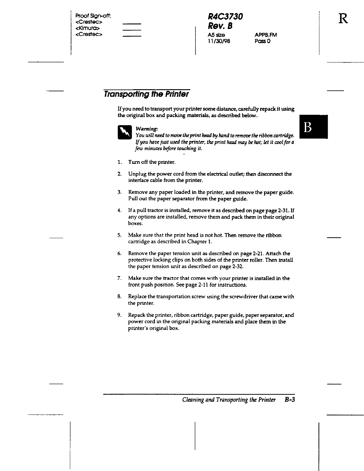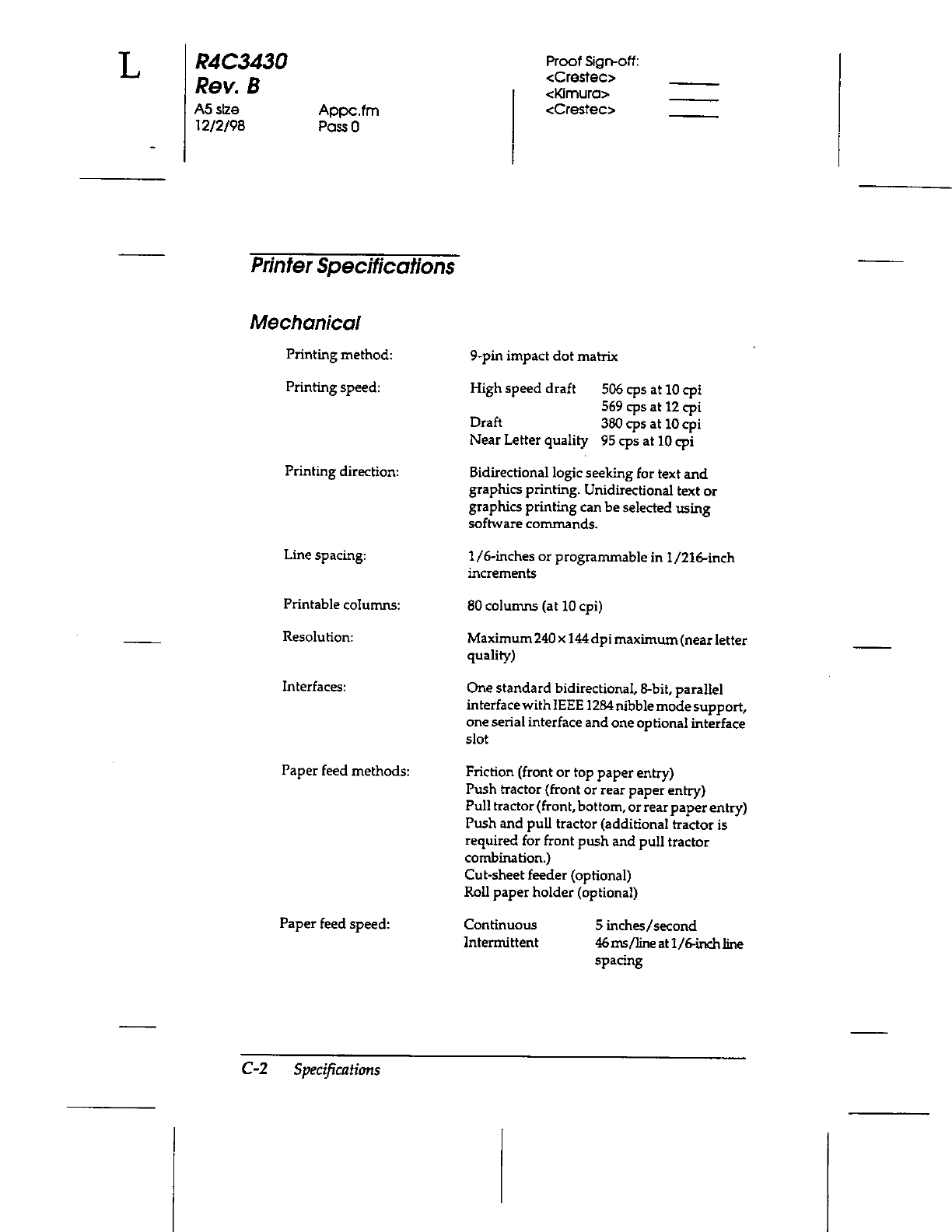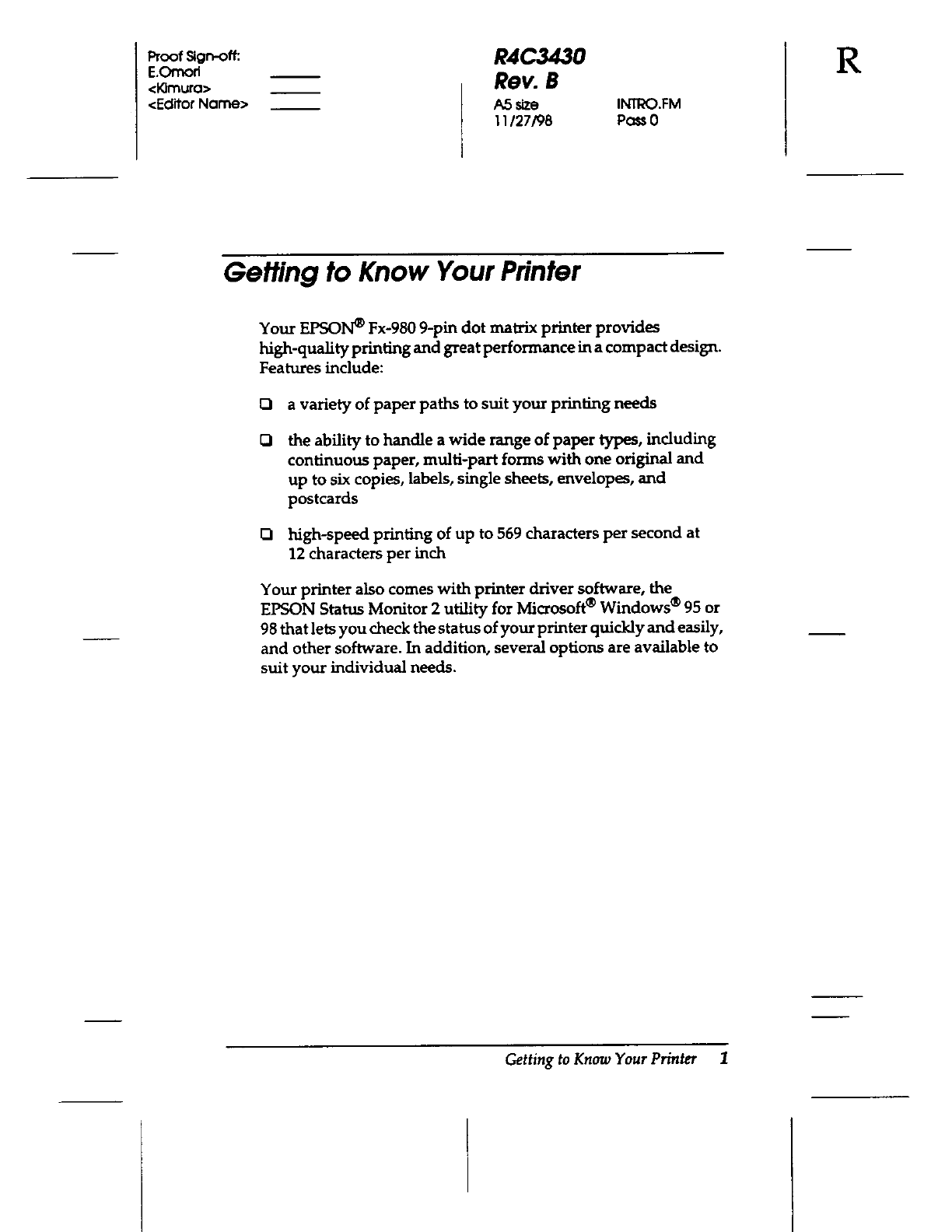 Seiko Epson FBP922A 9-Pin Dot Matrix Printer User Manual 28382