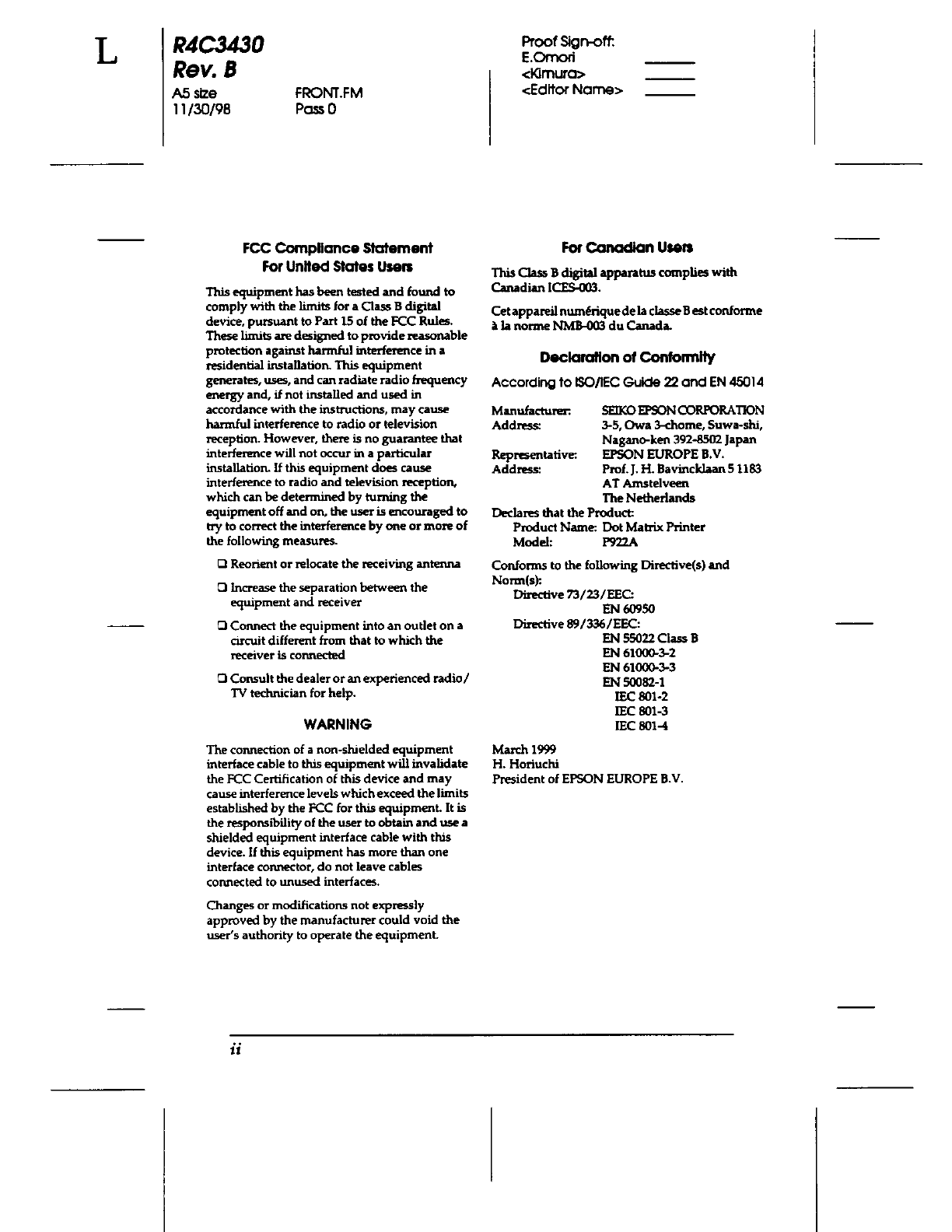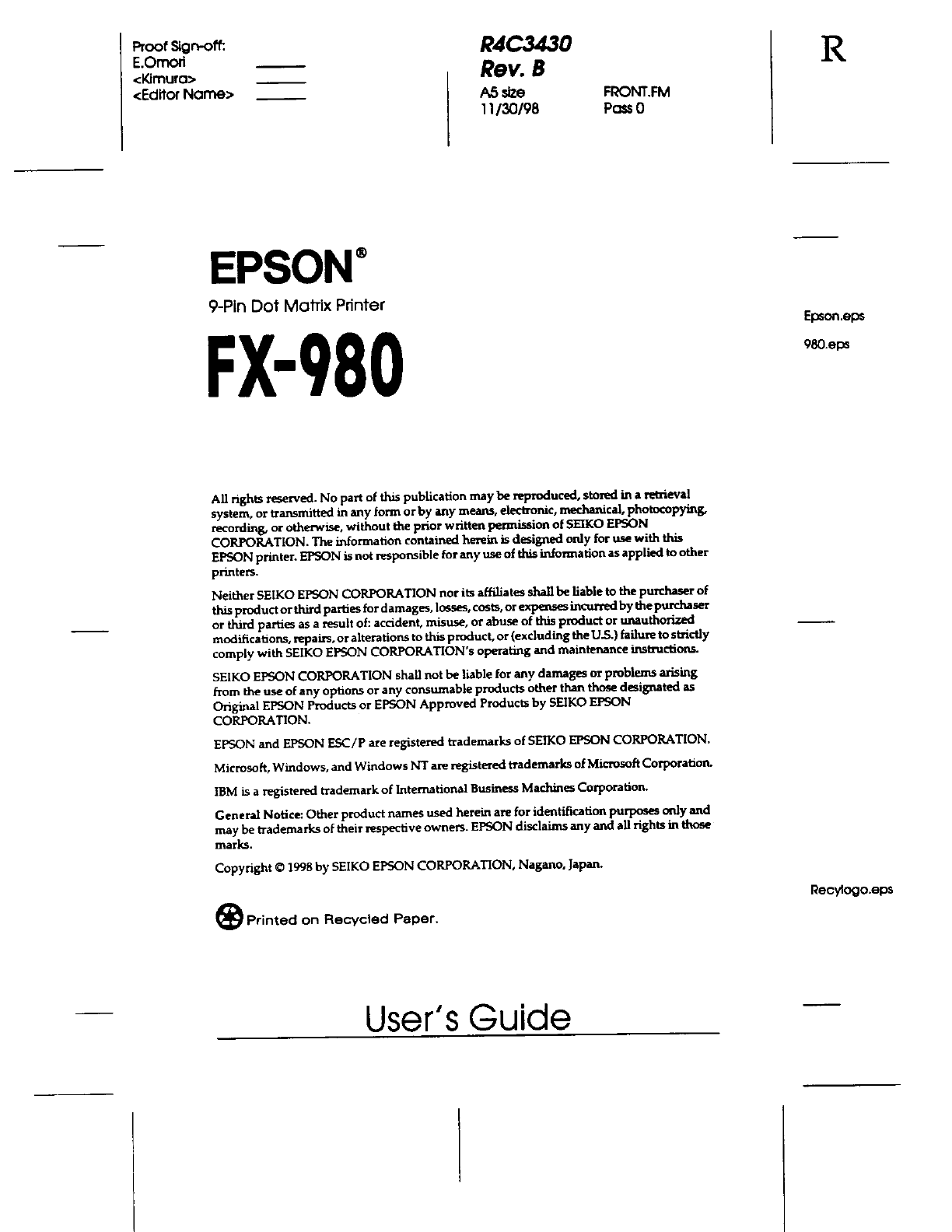 Seiko Epson FBP923A 9-Pin Dot Matrix Printer User Manual 28393