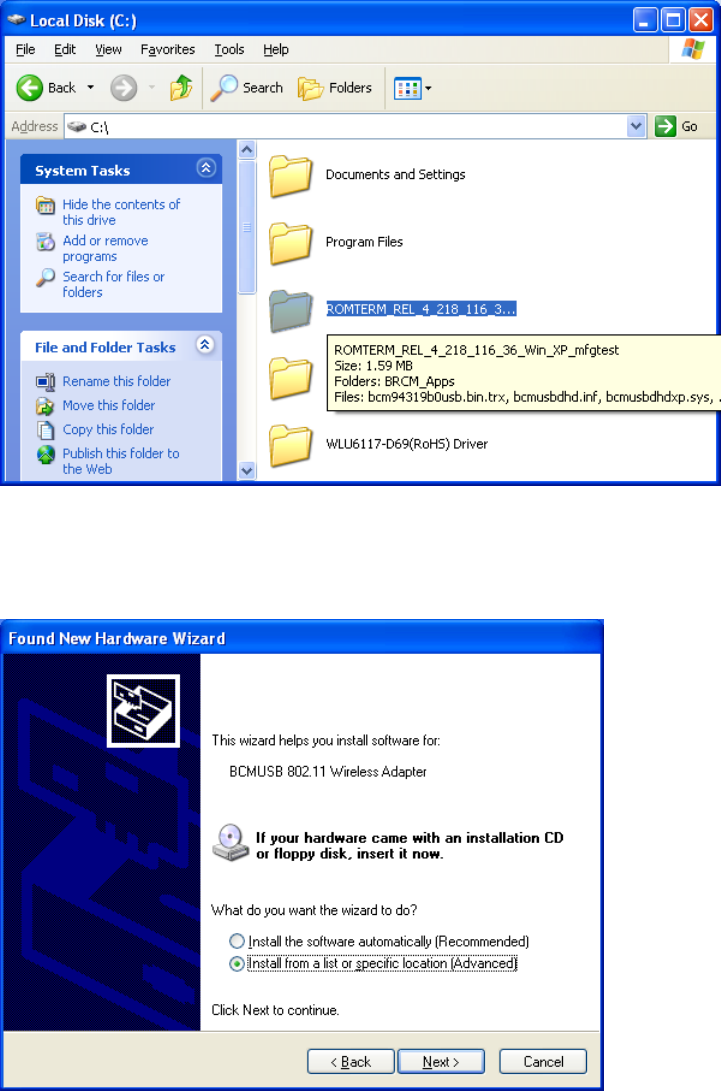 1. Copy “ROMTERM_REL_4_218_116_36_Win_XP_mfgtest” folder C:\