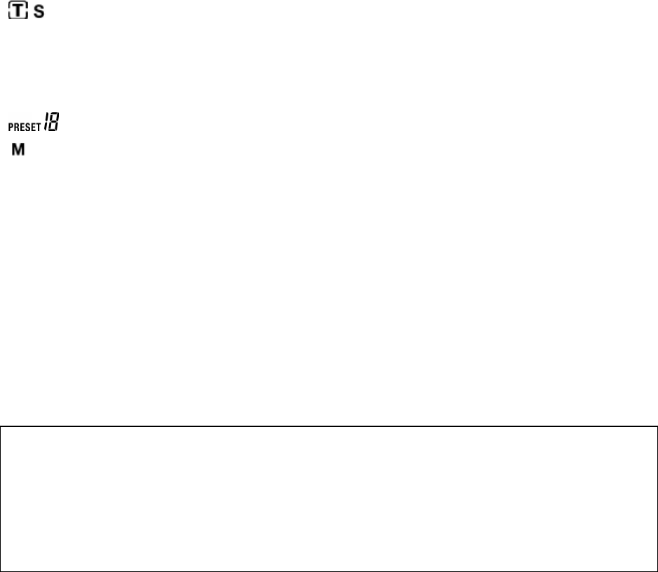 (Displayed) Selected Preset Function (Selected Preset No. 1~19)