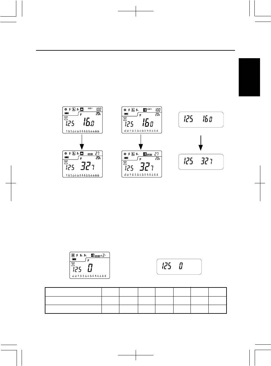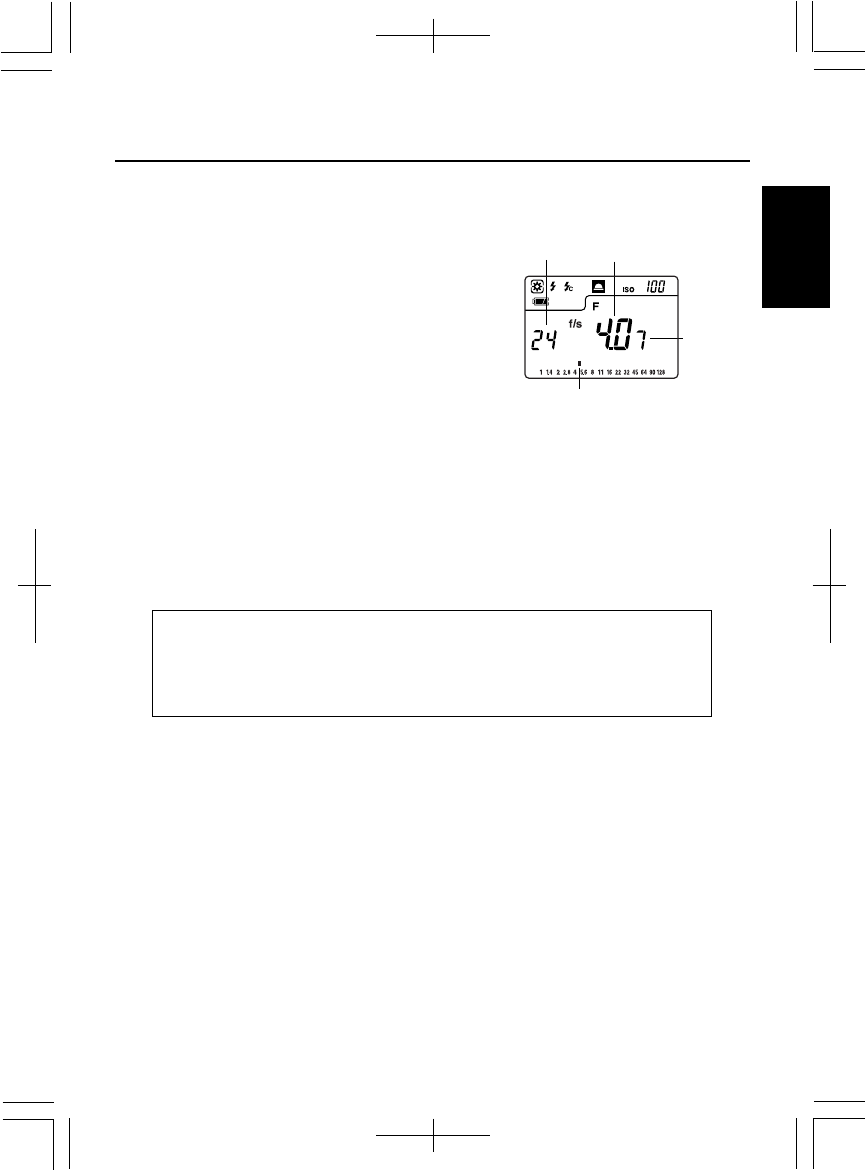 Analog display : F1.0 - F128 (in 1/2 steps),T4.0 seconds -1/4000 seconds (in 1/2 steps)
