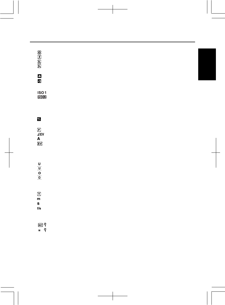 Exposure Out of Range : Eu (underexposure) or Eo (overexposure) indication
