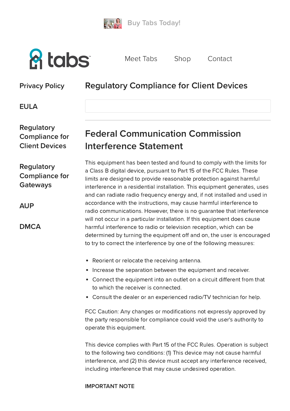 2/13/2018 Regulatory Compliance for Client Devices - Tabs – Tabs
