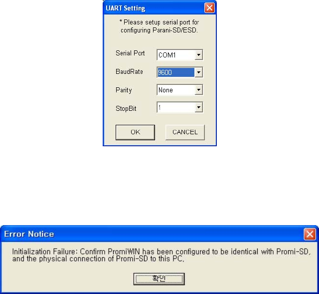 only when both DCE devices are Parani-ESD. In this case, set both Parani-ESDs to 8 Data bit and No