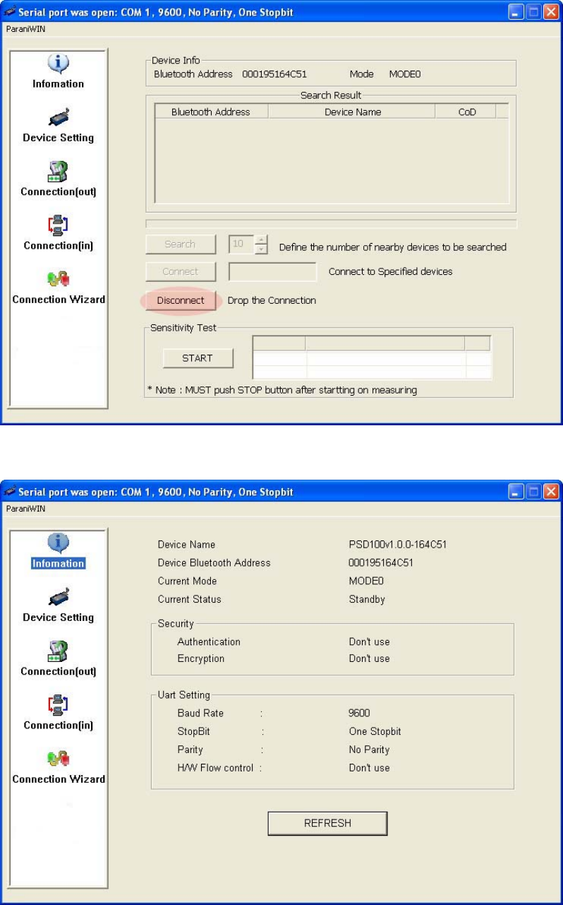 is 1, you can use DTR signal in order to disconnect Bluetooth connection.