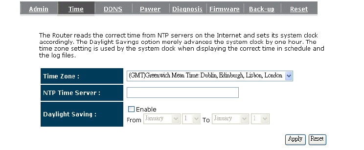 Daylight Savings: The router can also take Daylight Savings into account. If you wish to