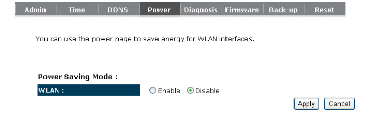 Saving power in WLAN/Ethernet mode can be enabled/disabled in this page.