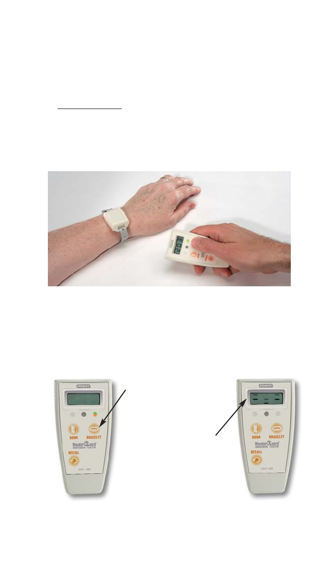 NOTE: Test one bracelet at a time. Surrounding bracelets should be at