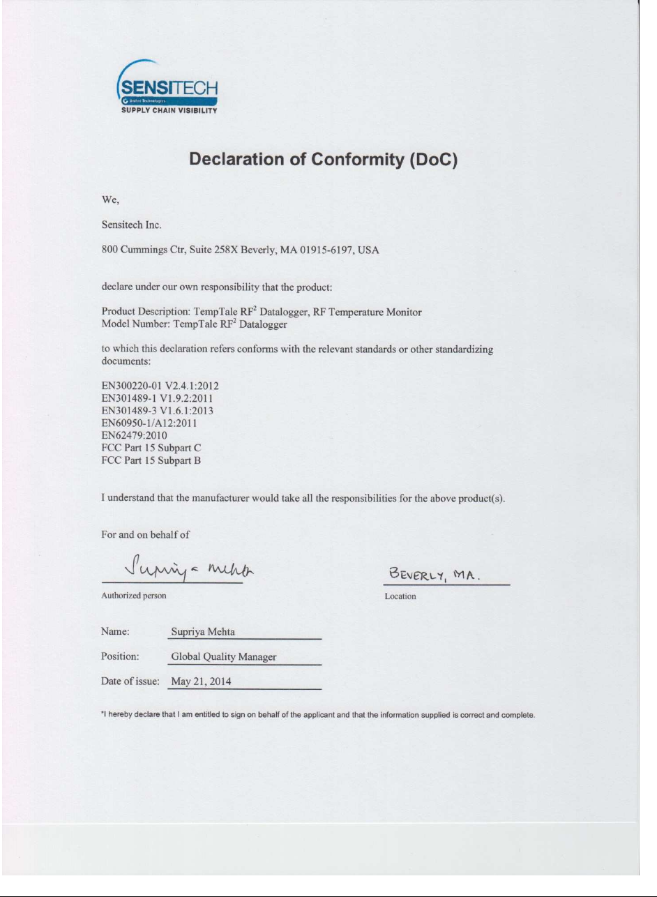 Sensitech T11012280 TempTale RF2 Gateway, Communications Gateway User Manual RF2 System Operating Manual Rev 8