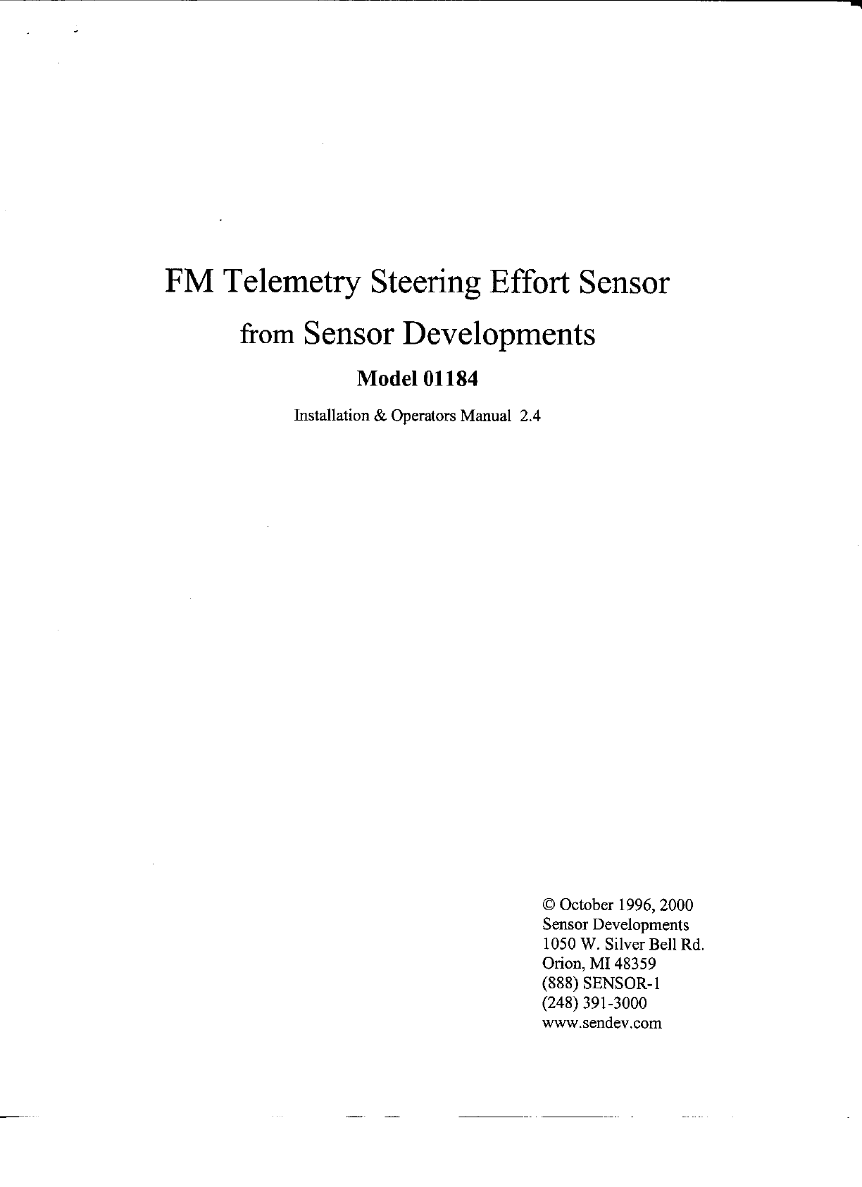 Sensor Developments Inc. Telemetry Transmitter Users Manual