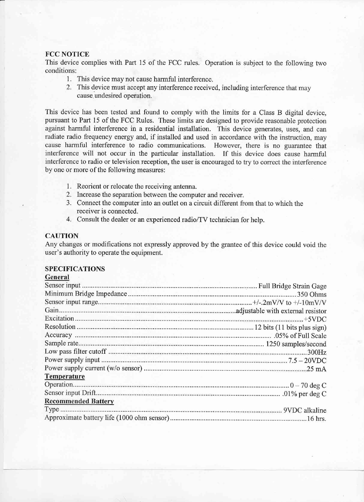 Sensor Developments 90305B Telemetry Transmitter User Manual