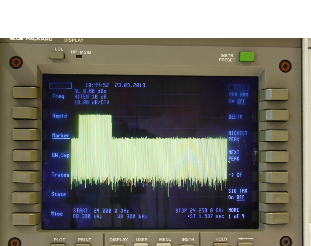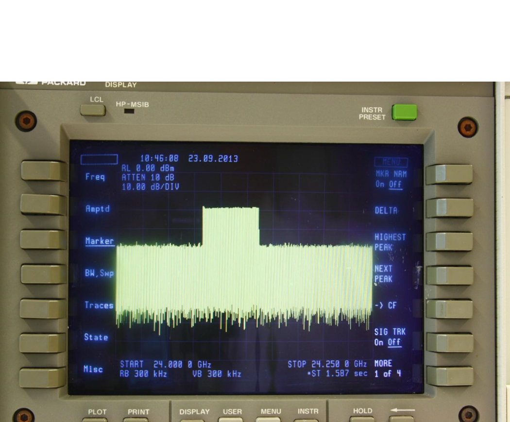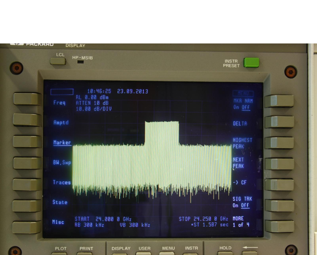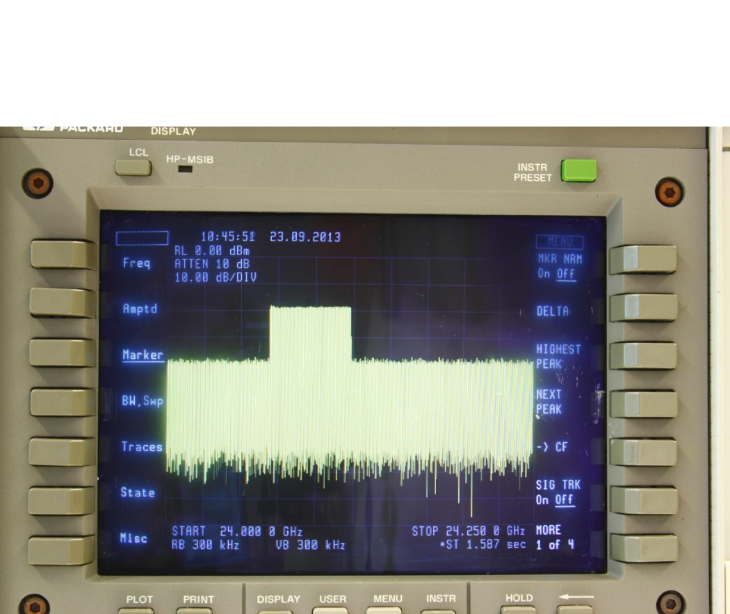 In the section below, a photo of the spectrum analyzer show the signal when the