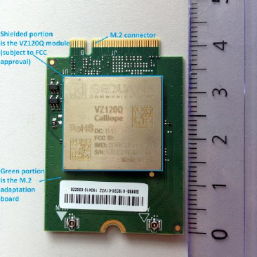 Sequans’ VZ120Q LGA module (soldered on an M.2 adaptation board) requires a Windows® PC, running