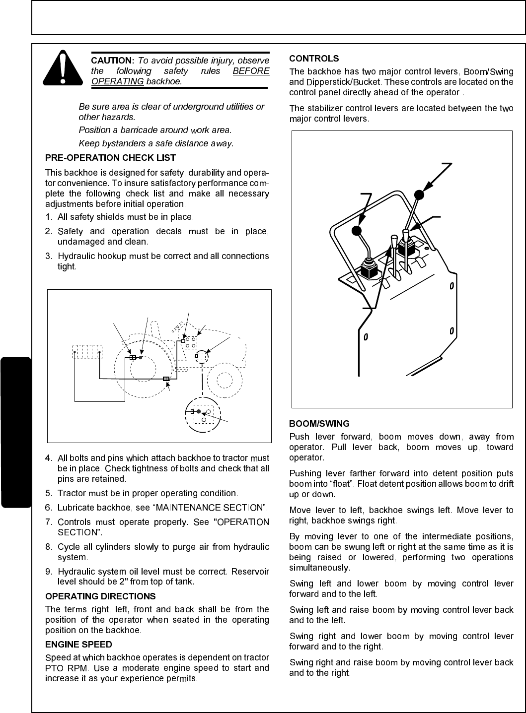 Controls, Boom/Swing, Dipperstick/Bucket.........................4-2