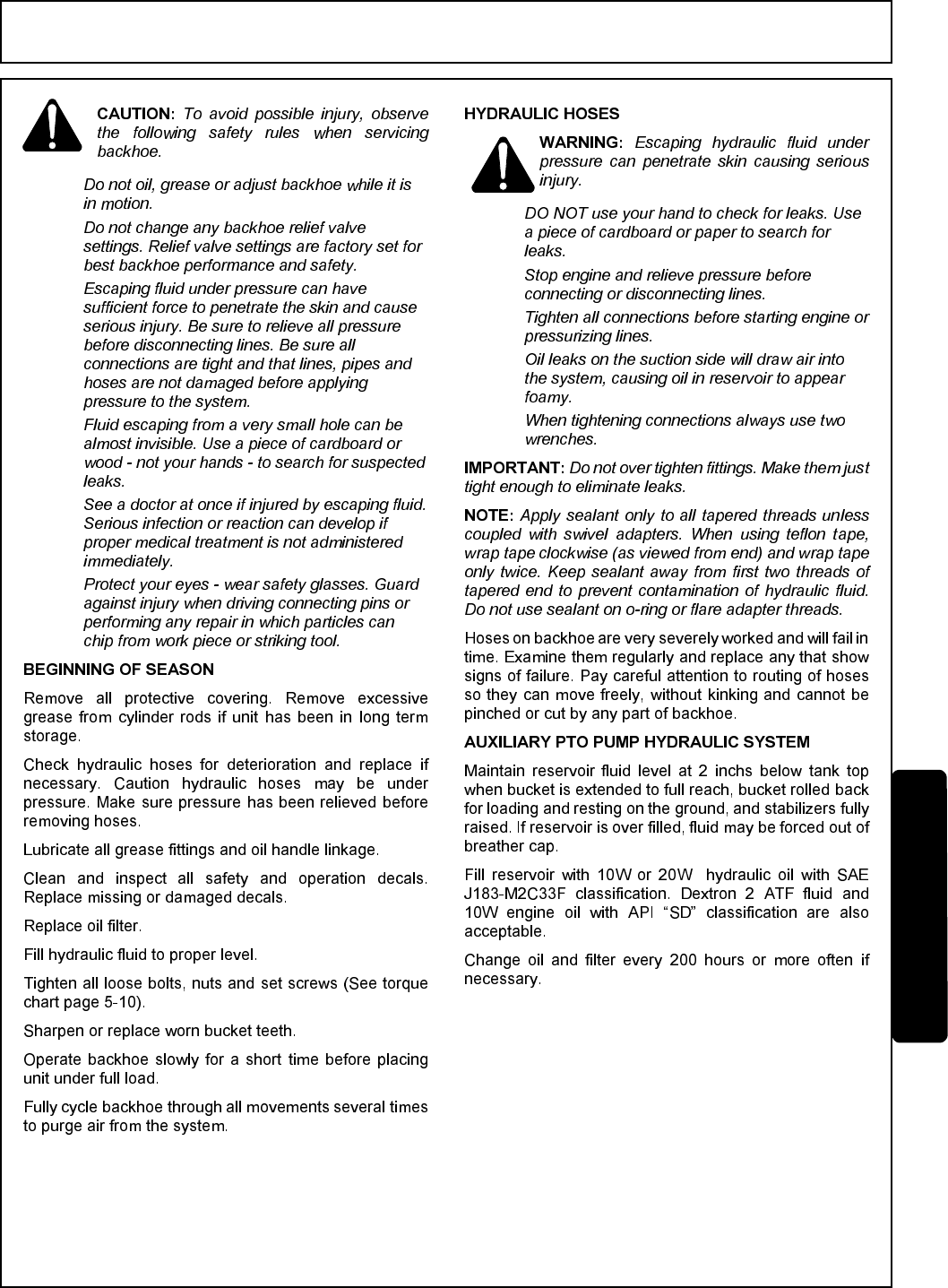 Beginning of Season, Hydraulic Hoses, Auxiliary PTO Hydraulic System .........5-3