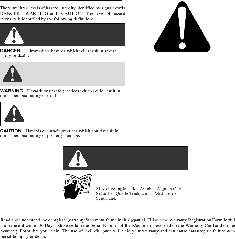 and follow these directions and the Safety Messages in this Manual. The Table of