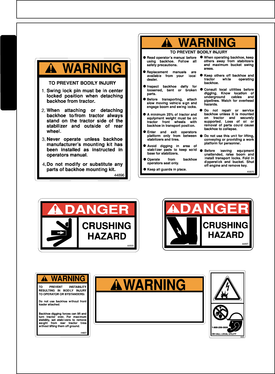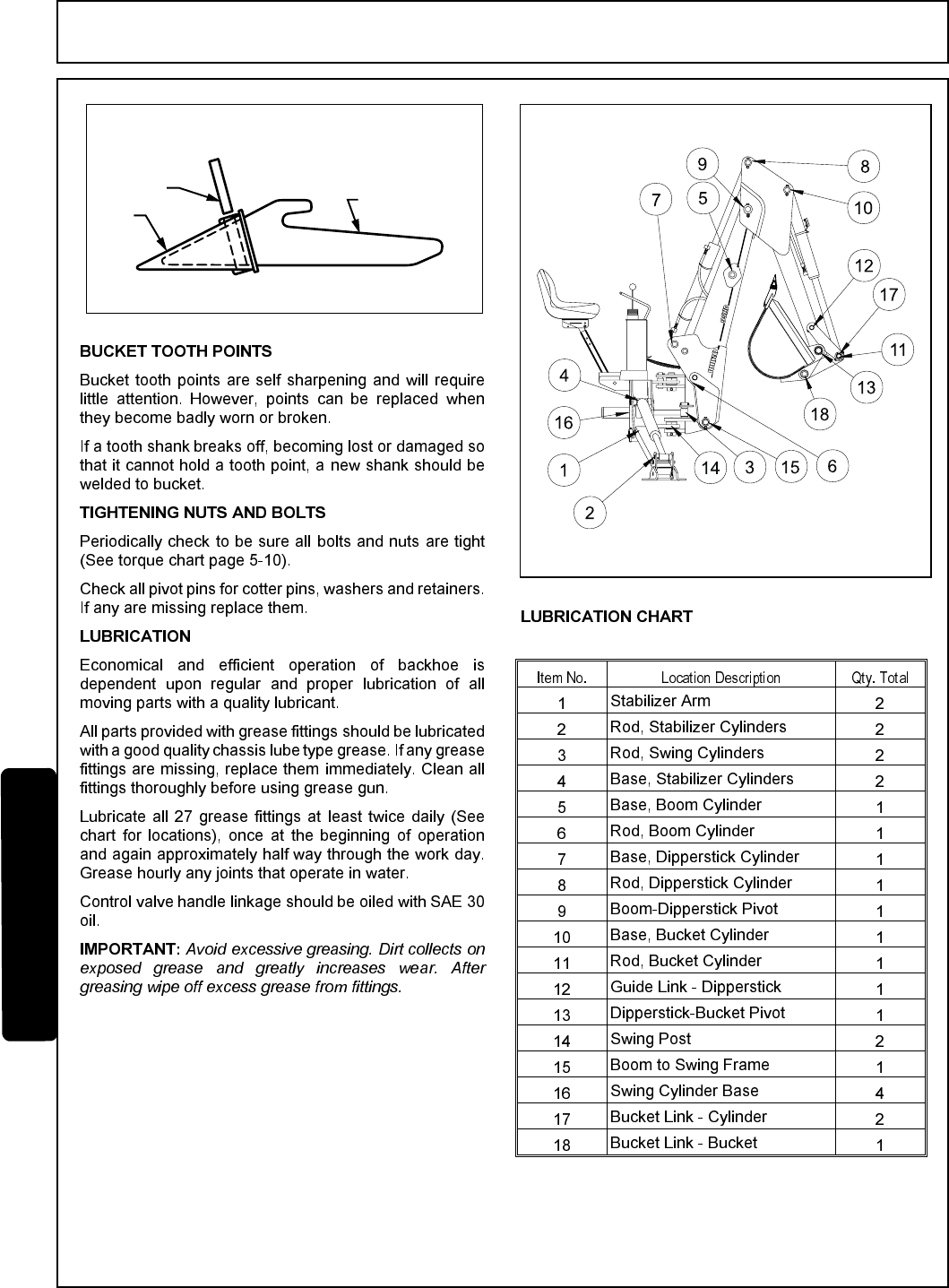 Swing Lock, Boom Lock, Transporting the Backhoe, Storage ...............4-5