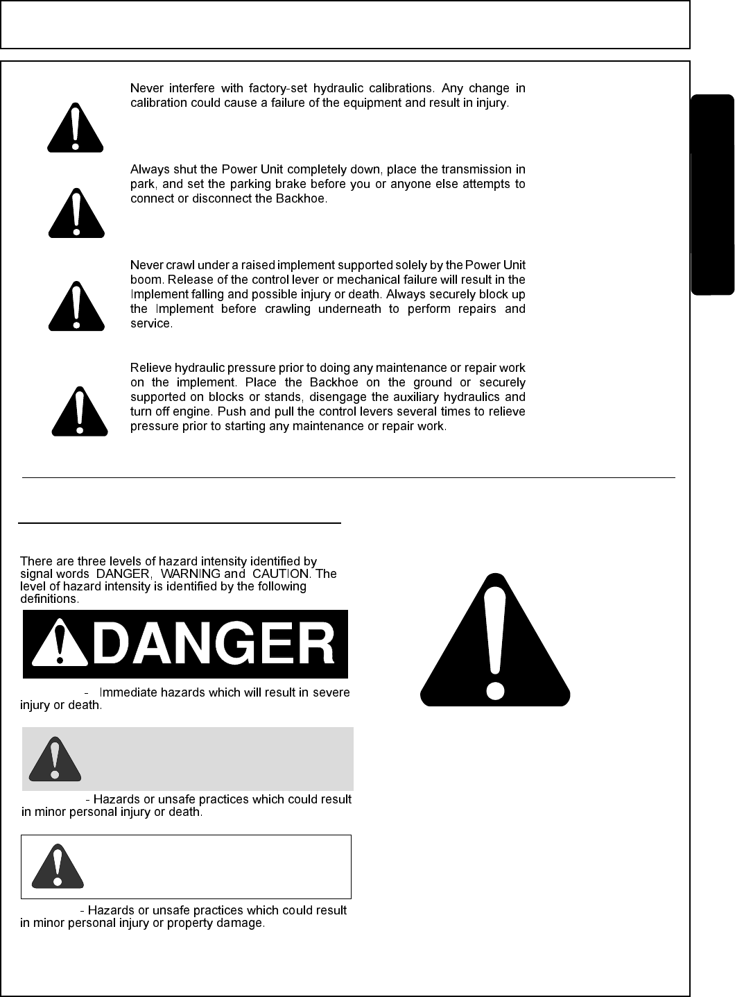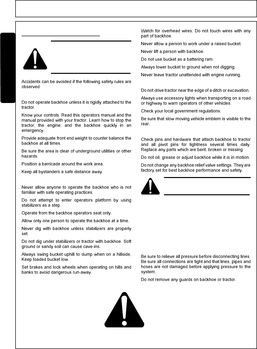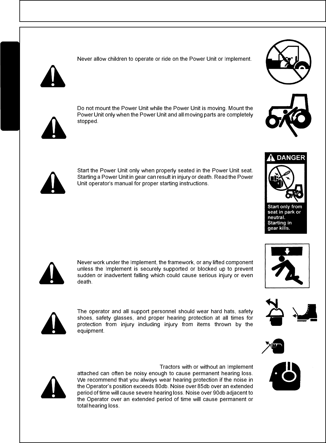 BEFORE YOU START!! Read the safety messages on the implement and shown in your manual. Observe