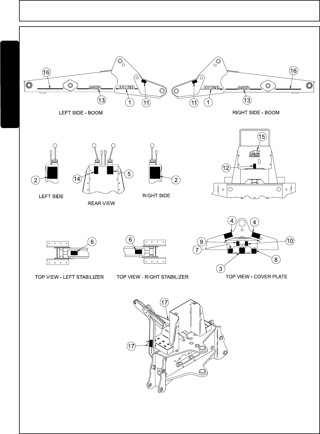 Boom, Side Frames, Mount Brackets, Backhoe Boom, Dipper, Main Frame, Stabilizer Legs, Swing