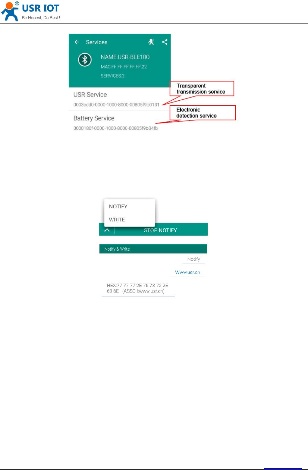 search (click magnifying glass button) , you can find the device named USR-BLE100, as shown in figure 1.