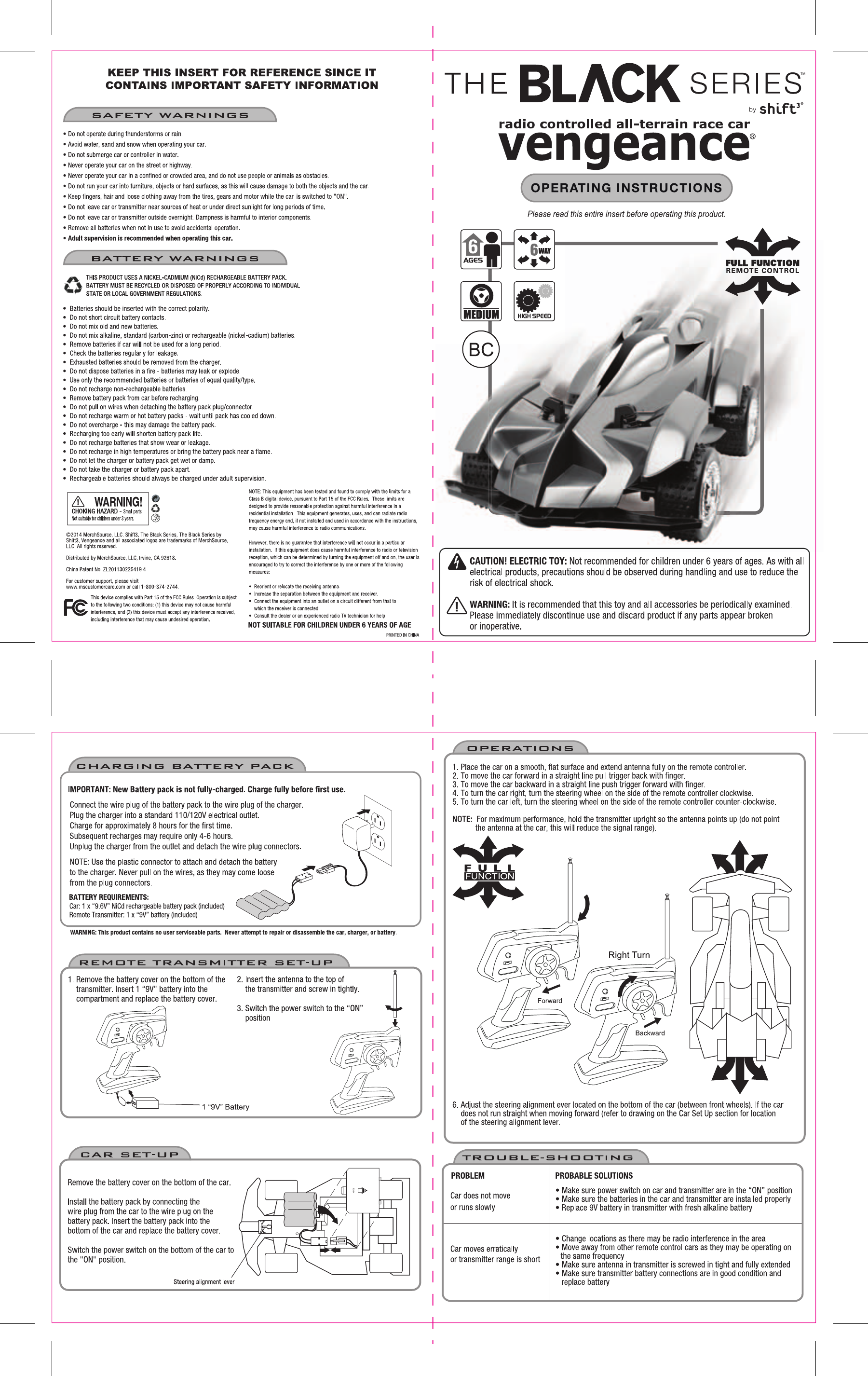 Shantou Chenghai Dongxin Plastic Toys DXTOY11144549A Toy RC Vengeance User Manual 2014 03 12 BSRCVengenaceCar IM v5 OL