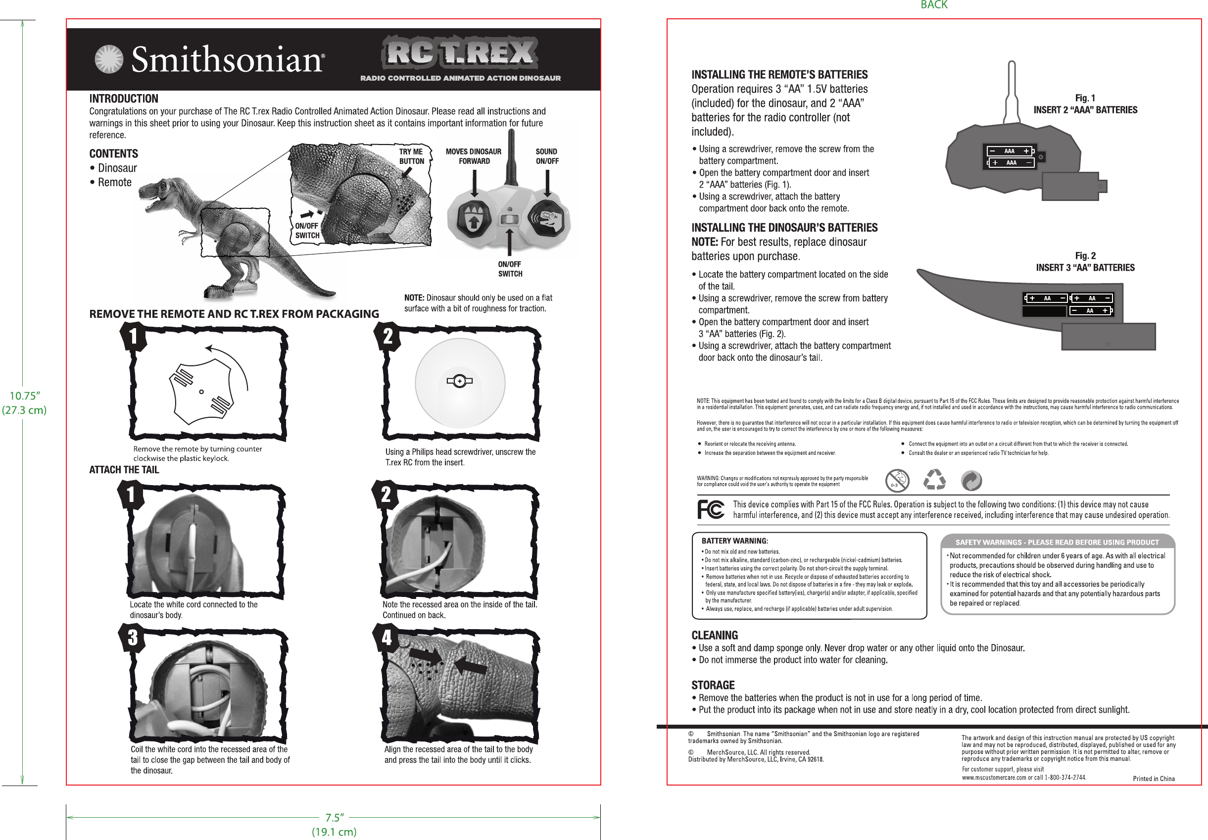 Shantou Chenghai Dongxin Plastic Toys DXTOY3550849M Toy RC Dinosaur User Manual 2015 05 08 SMRCTRex IM v6 OL