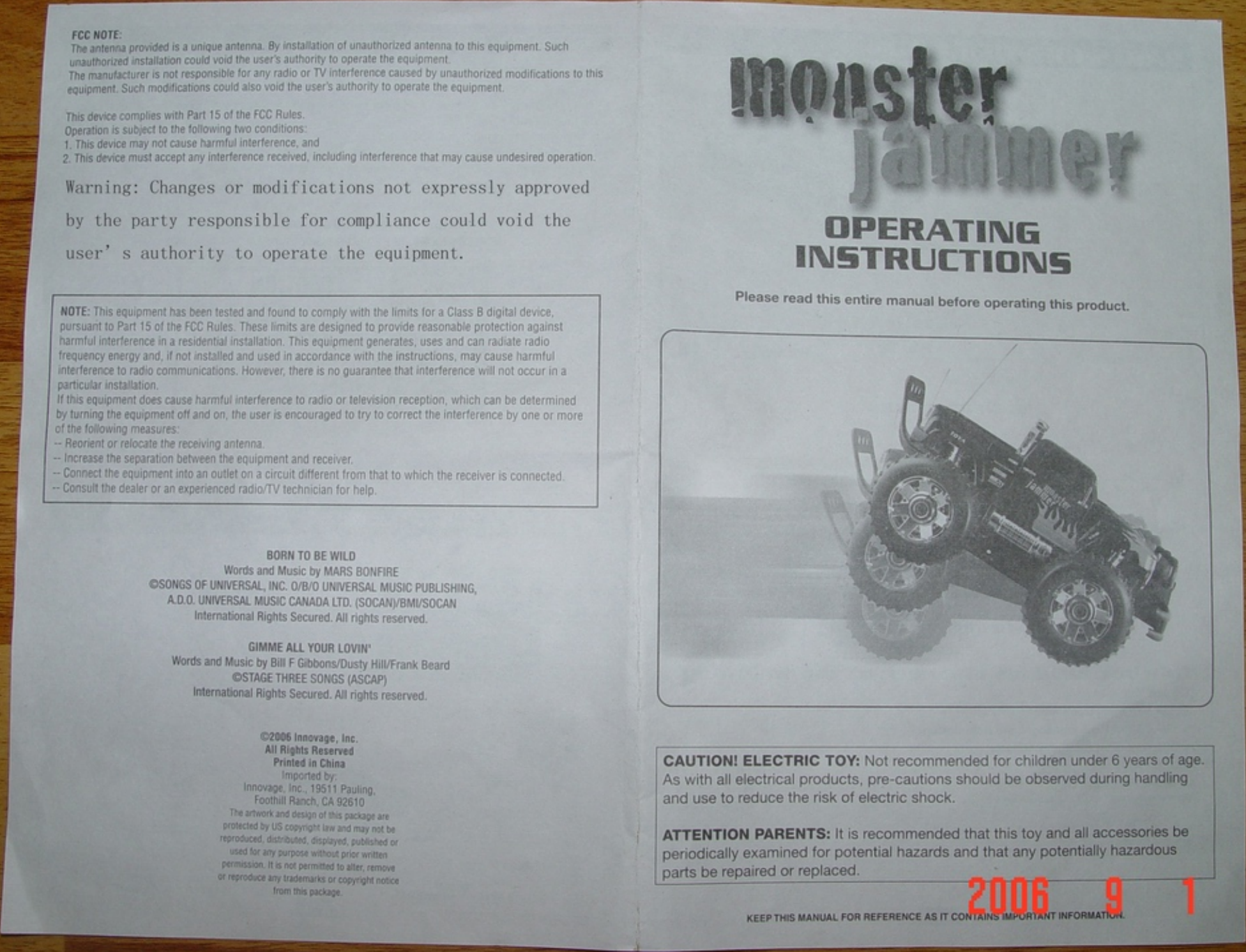Shantou Chenghai Dongxin Plastic Toys Co., Ltd Toy R/C Truck with Music Users Manual