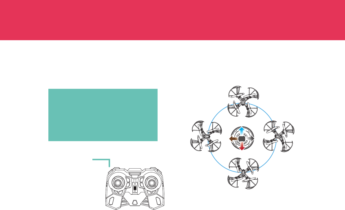 • While positioning the Drone into a steady hover, slowly decrease the throttle until it lands.