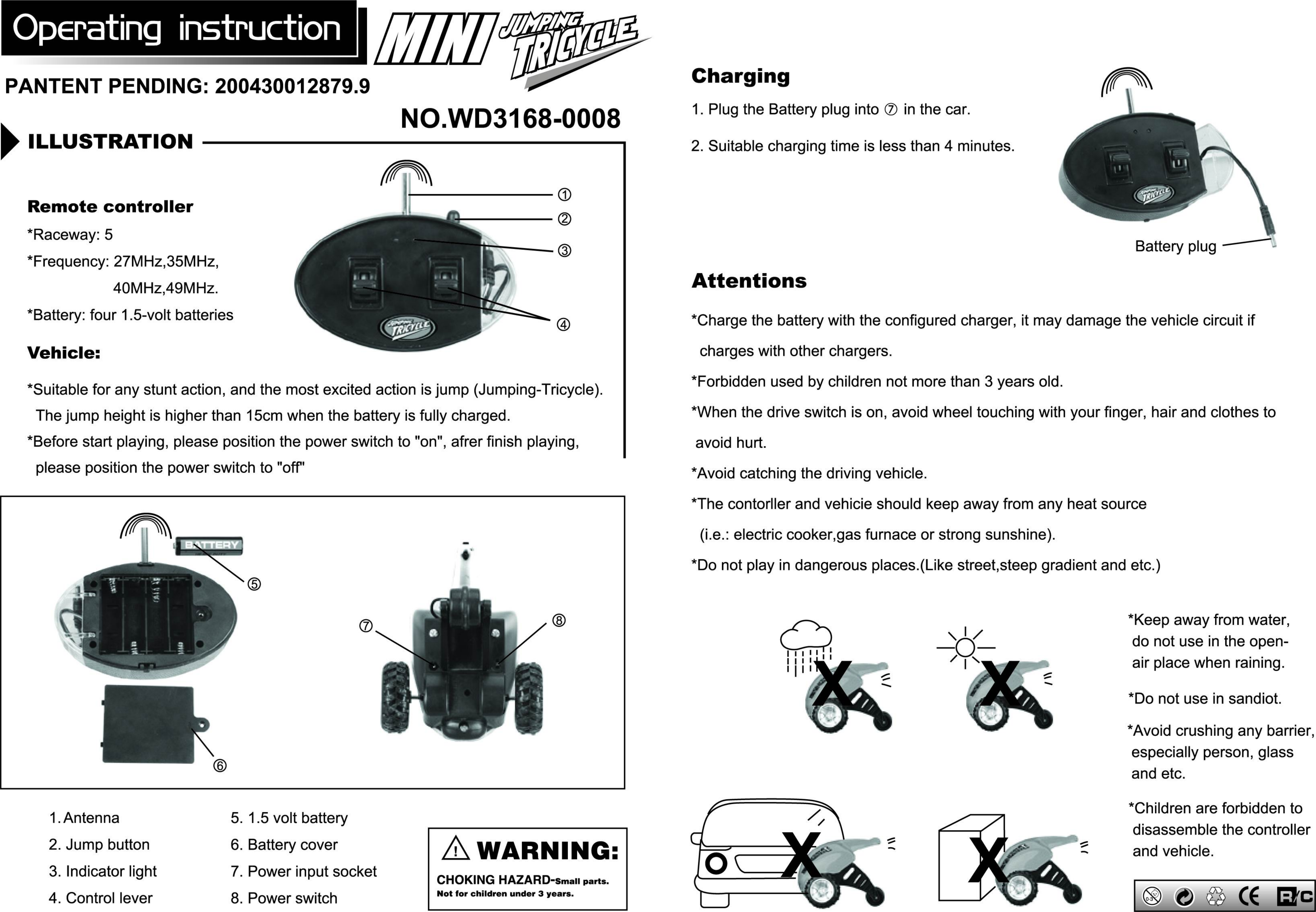 Shantou Special Economic Zone Nan Guo Arts and Crafts Industry and Commerce 3168-0008-018 Remote Control Toy Transmitter User Manual