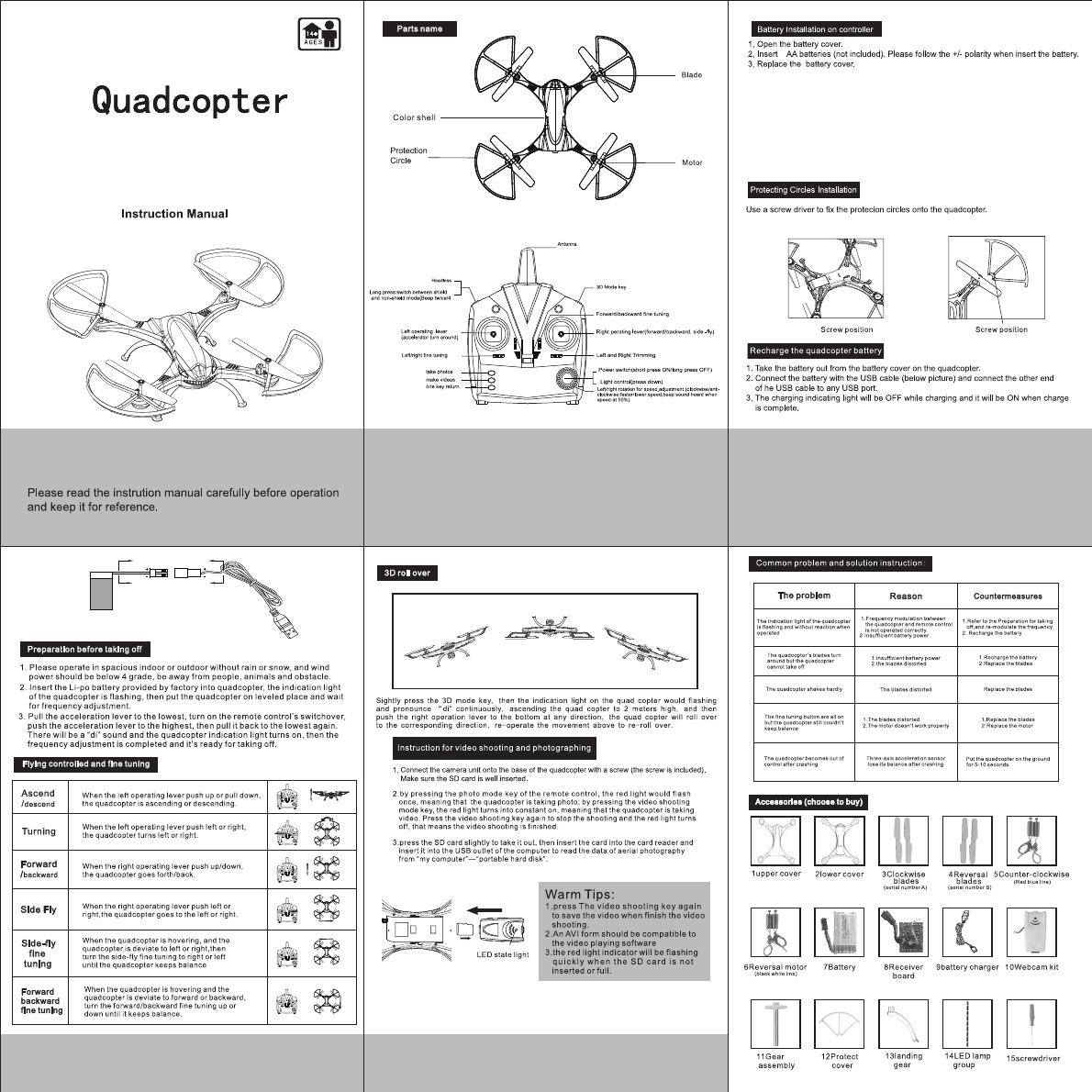 Shantou Yike hobby YK022 2.4G Control RC Quadcopter/Helicopter User Manual
