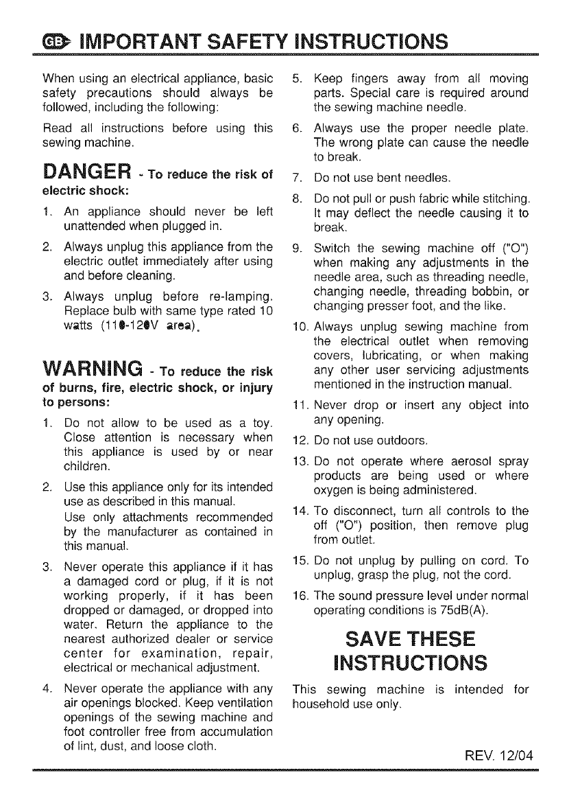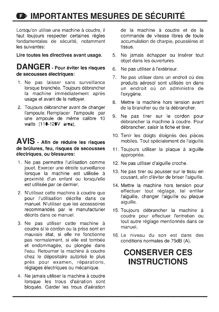 Cette garantie est offerte sous reserve que la machine a coudre soit utilis6e dans le cadre d'un usa qe domestique normal par