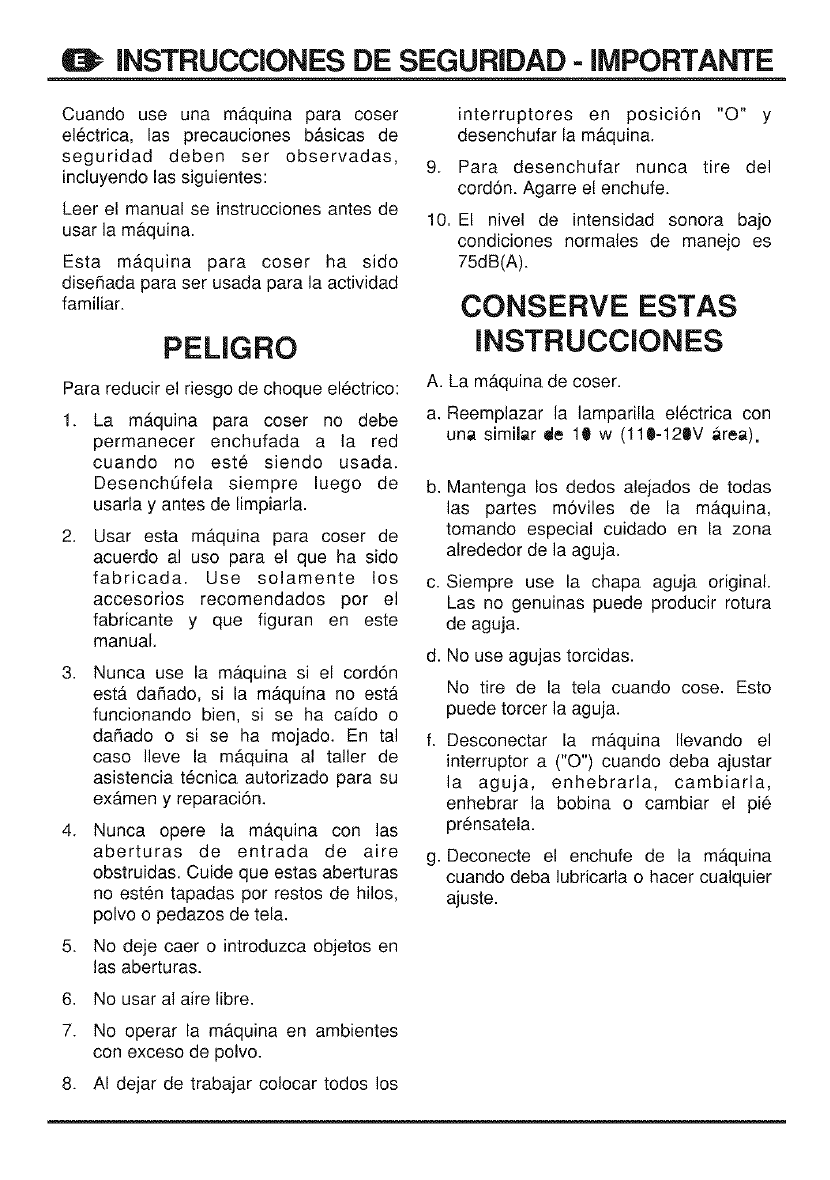 Esta garantia es valida siempre y cuando la maquina de coser se utilice Qnicamente para costura domestica normal, por el