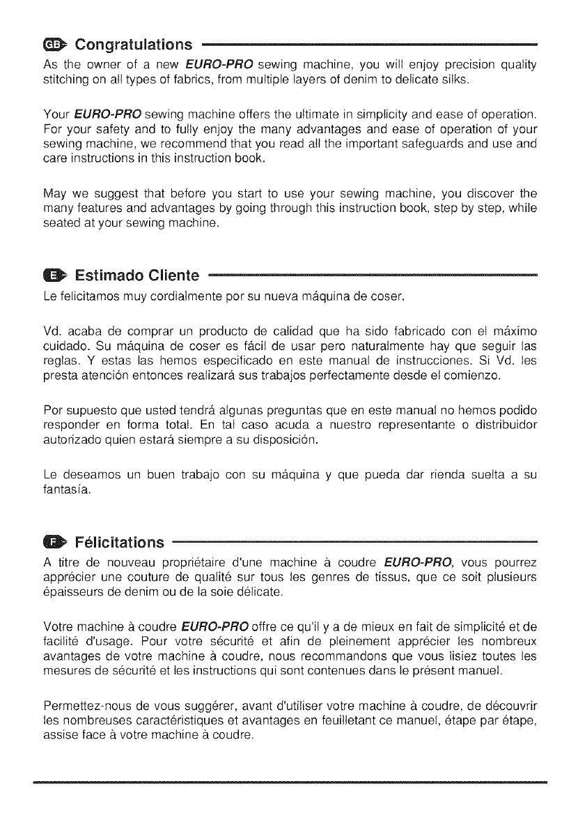 EURO-PRO Mechanical Sewing Manual L0606672 EURO-PRO Mechanical Sewing Owner's Manual, EURO-PRO Mechanical Sewing installation guides