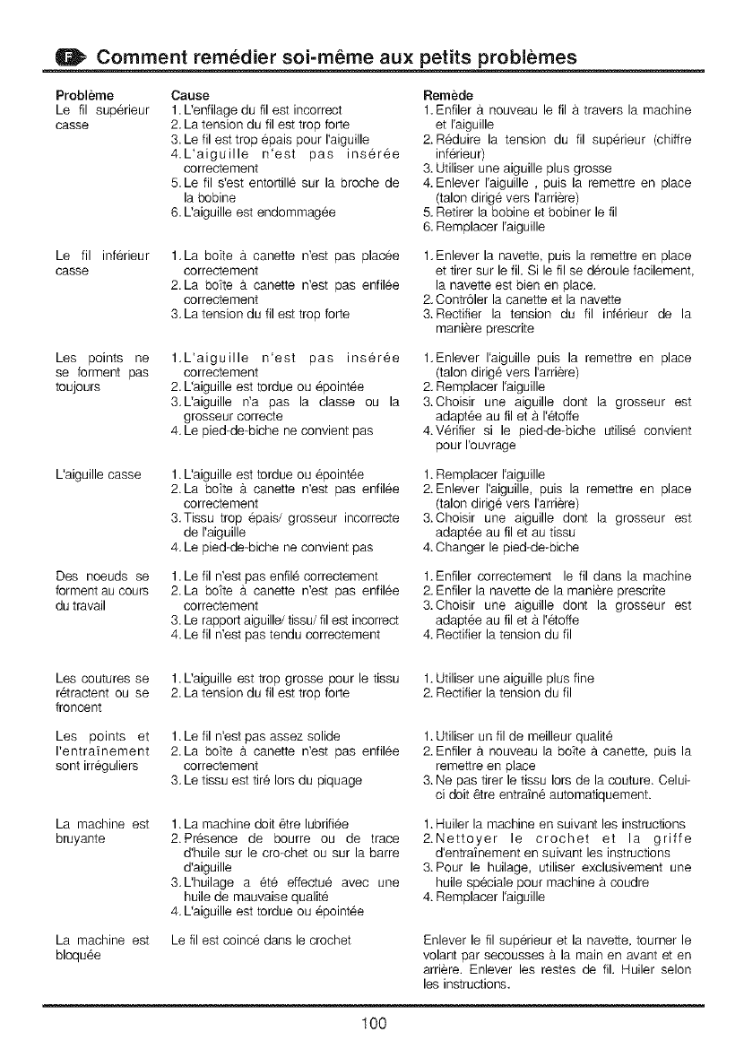 n6gligence ou des reparations effectuees sur la machine a coudre par du personnel non qualifie.