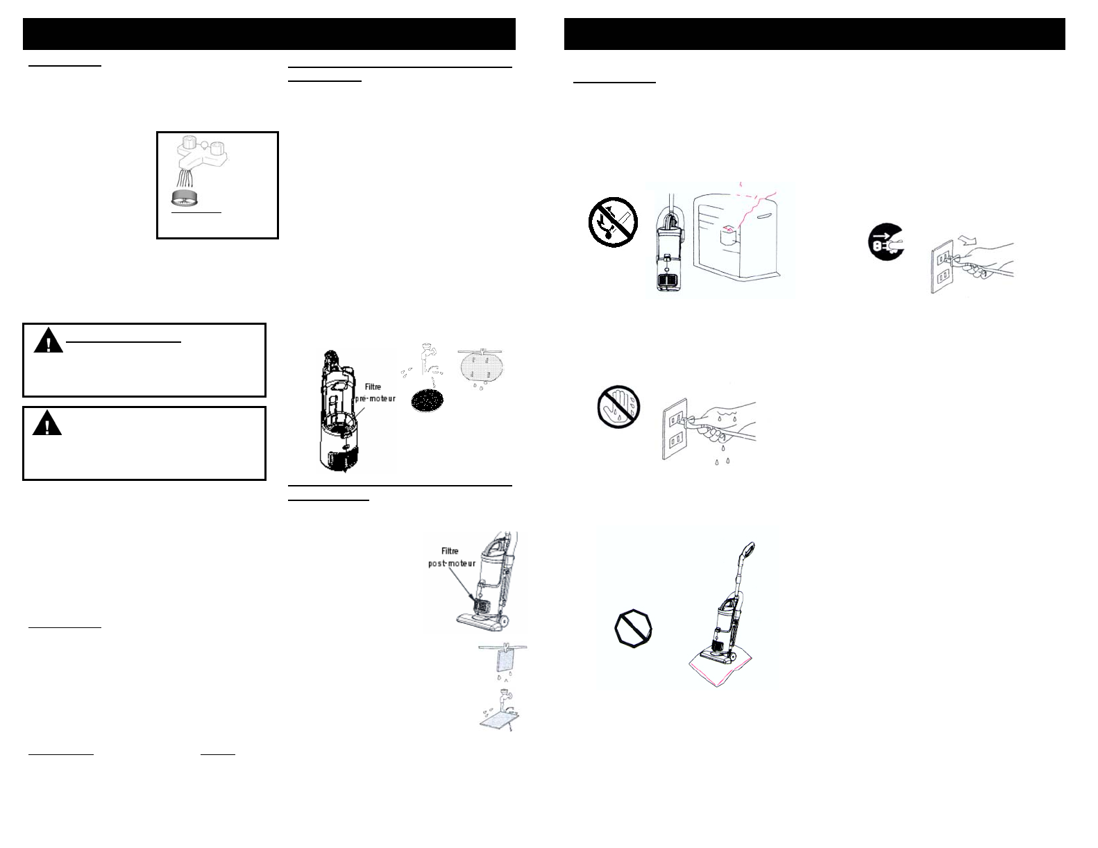 Les pièces non durables, y compris, sans s’y limiter, les filtres, brosses et composantes électriques exigeant