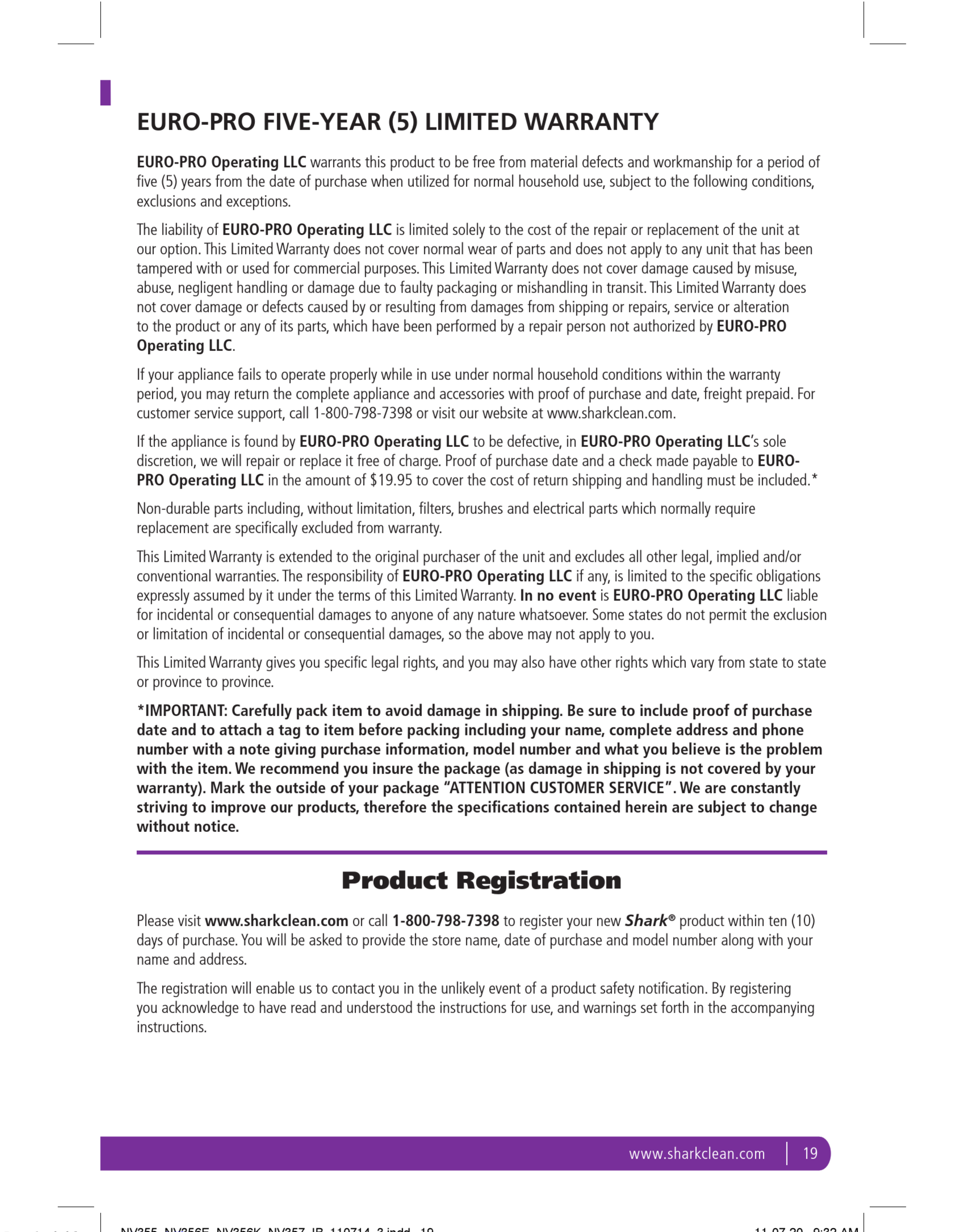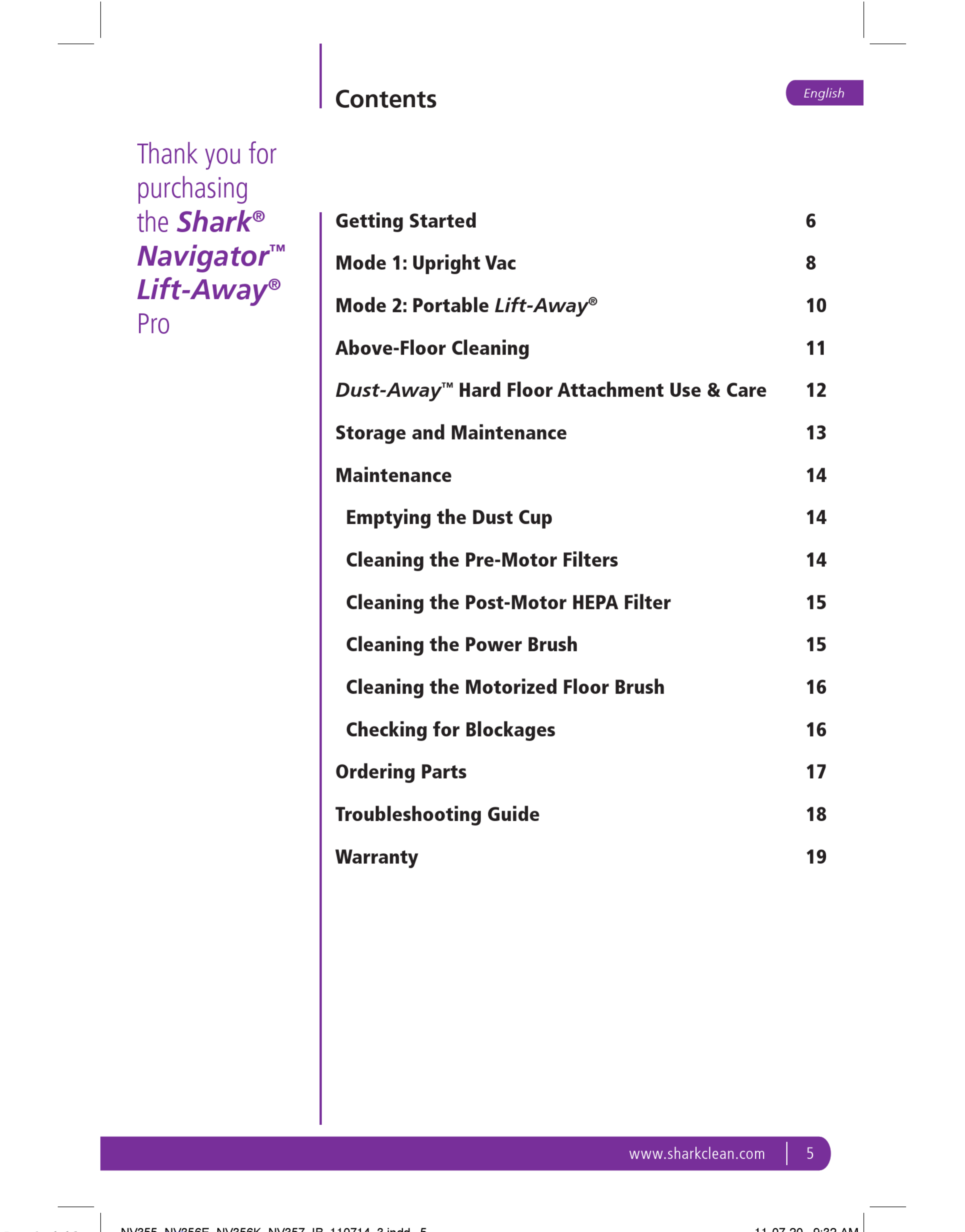 Shark Navigator Lift Away Pro Nv355 Owners Manual 1002881 User