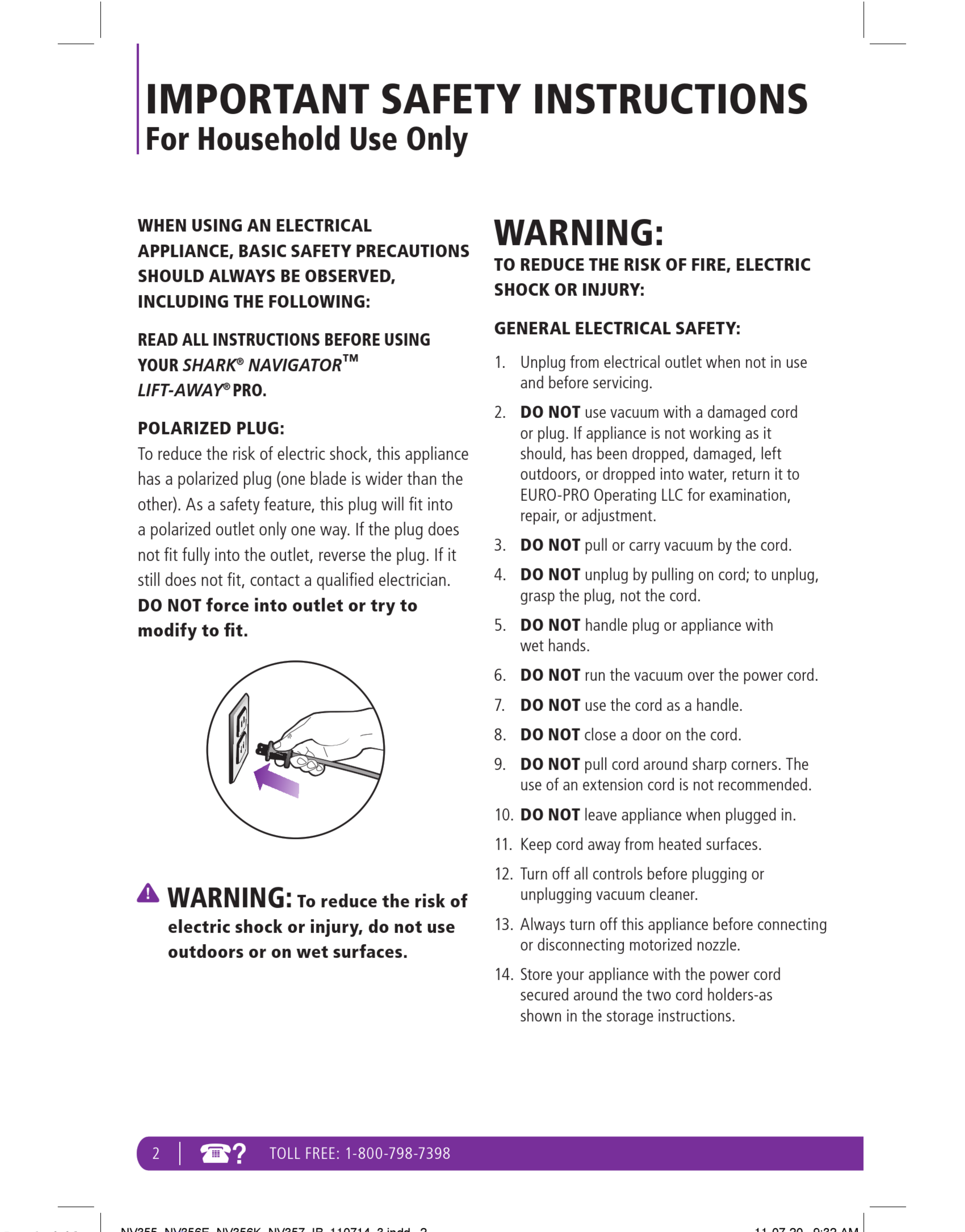 User Manual: Shark Shark-Navigator-Lift-Away-Pro-Nv355-Owners-Manual-1002881
