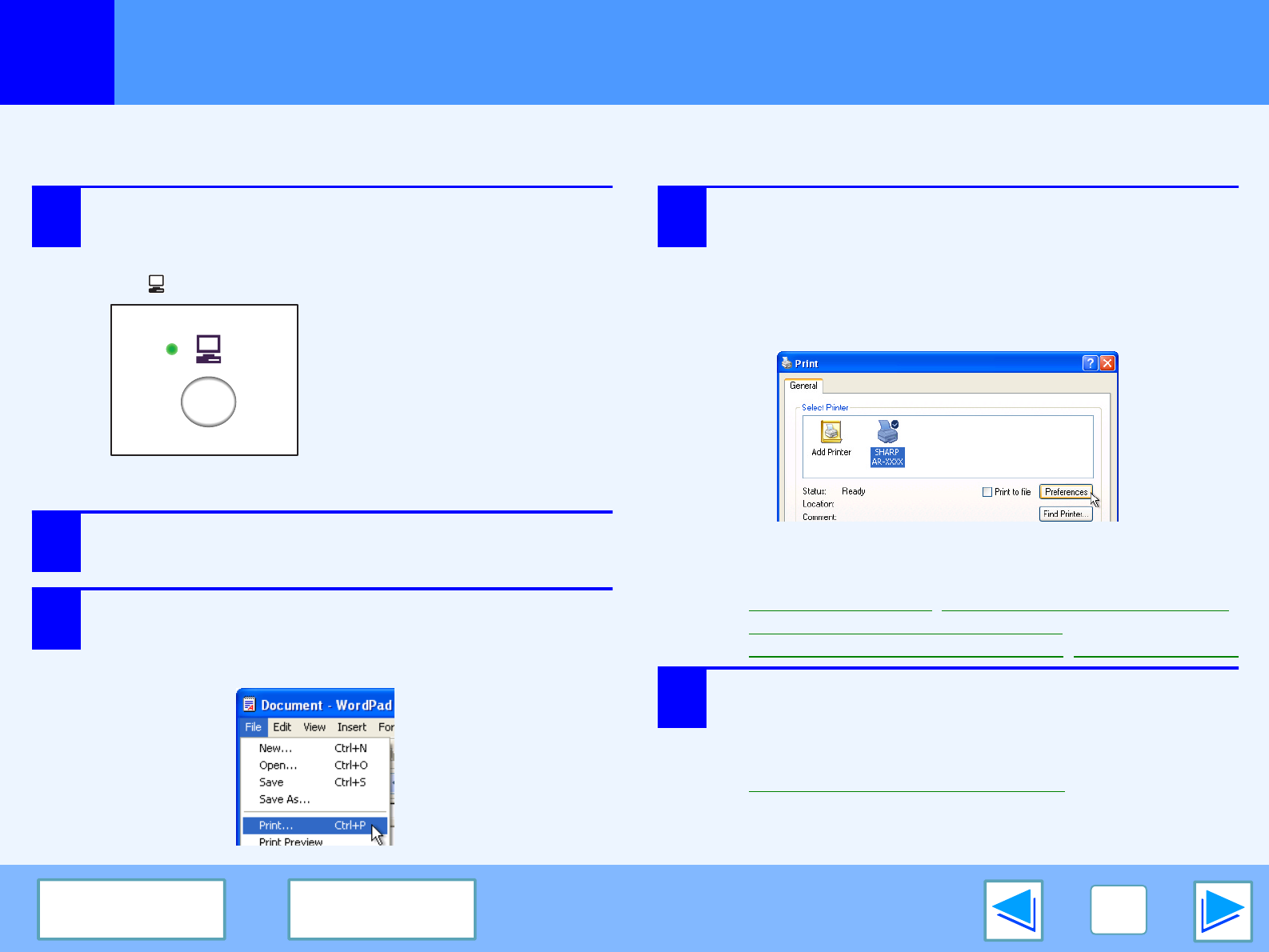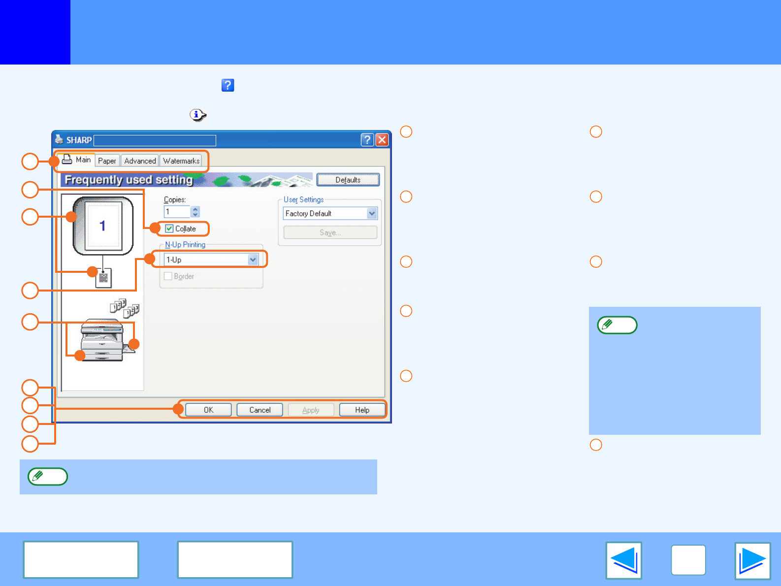 For detailed information on the settings in the printer driver and Print Status Window, see the help files for each.